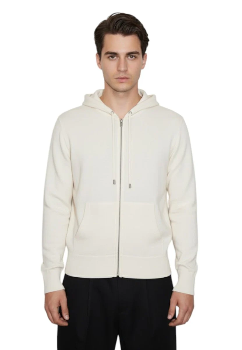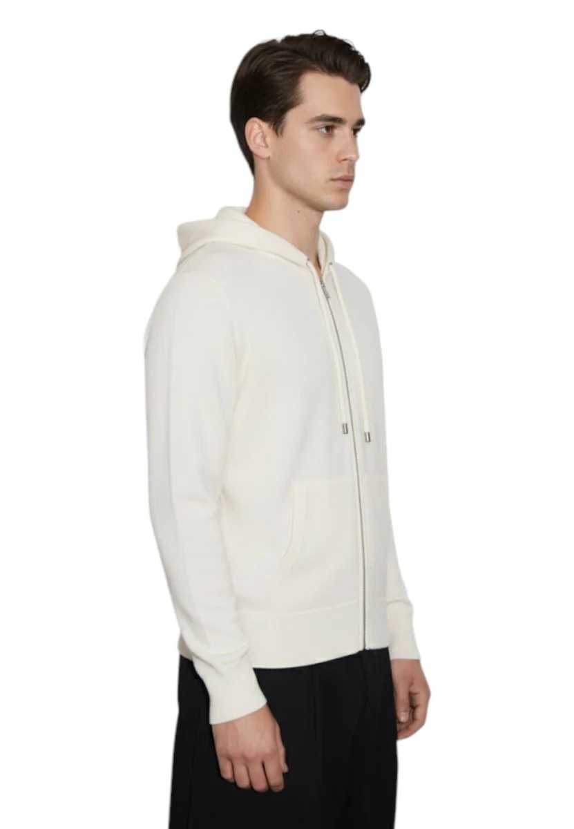 La felpa presenta un design versatile con una pratica chiusura a zip, ideale per adattarsi a qualsiasi condizione climatica. Il colore neutro la rende facilmente abbinabile con qualsiasi outfit, mentre il tessuto di lana Merino assicura calore e traspirabilità in ogni stagione.