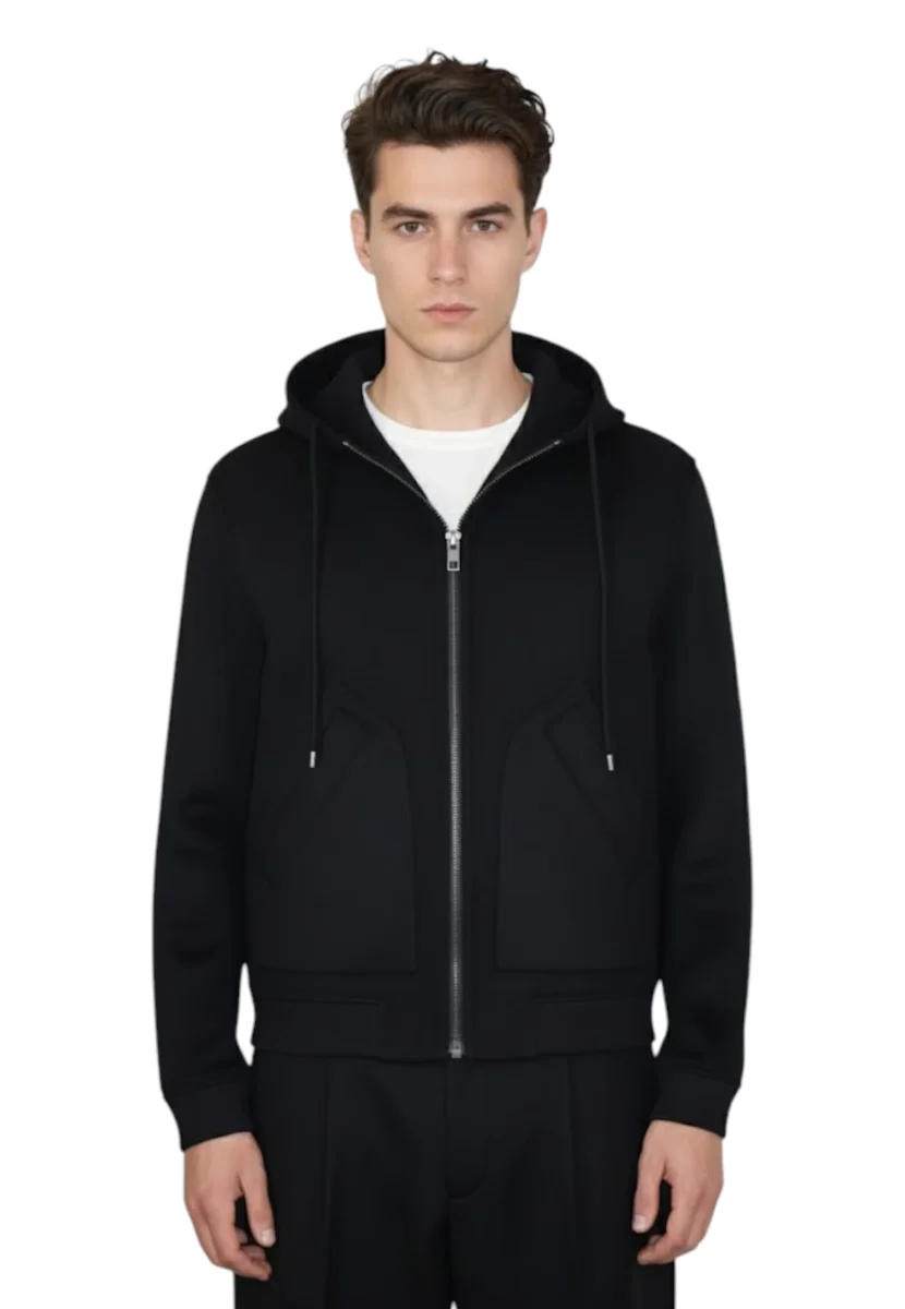 • Dettagli: Tasche con zip diagonali, cappuccio regolabile con cordini