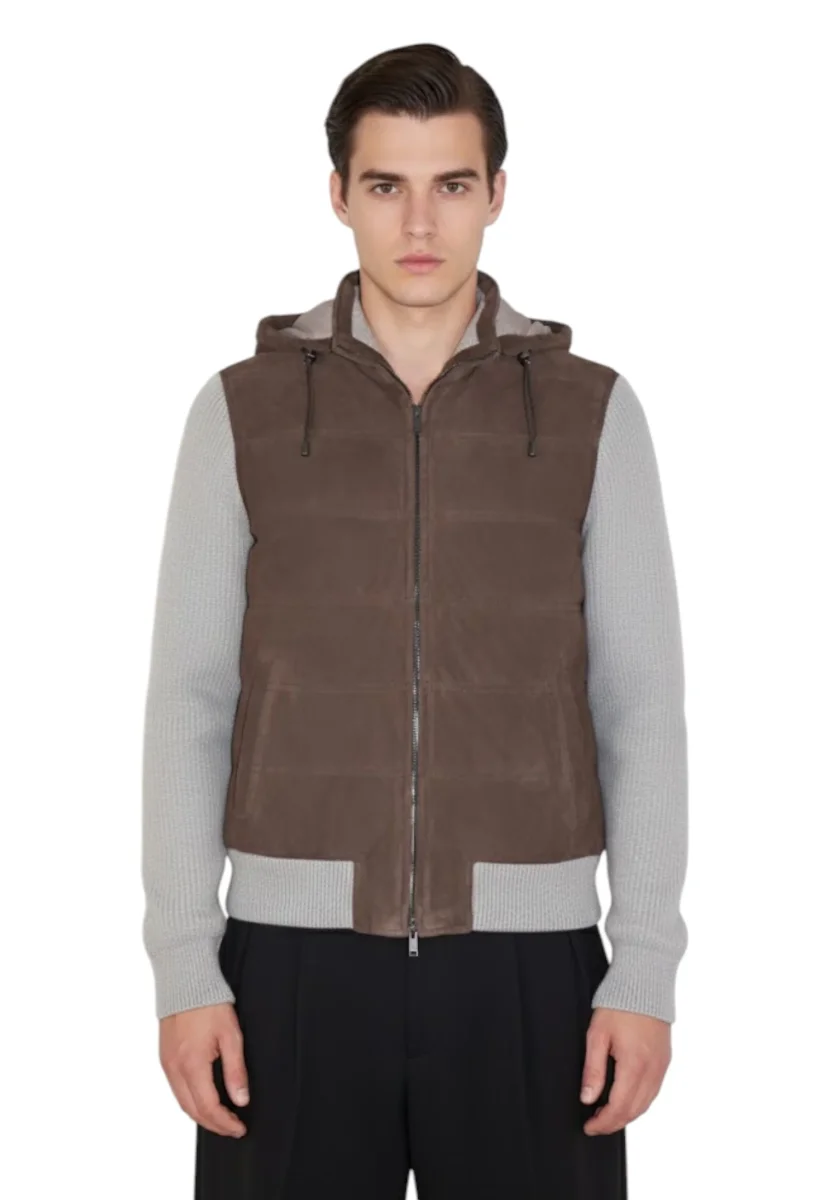 • Modello: Giacca in pelle con cappuccio e zip frontale