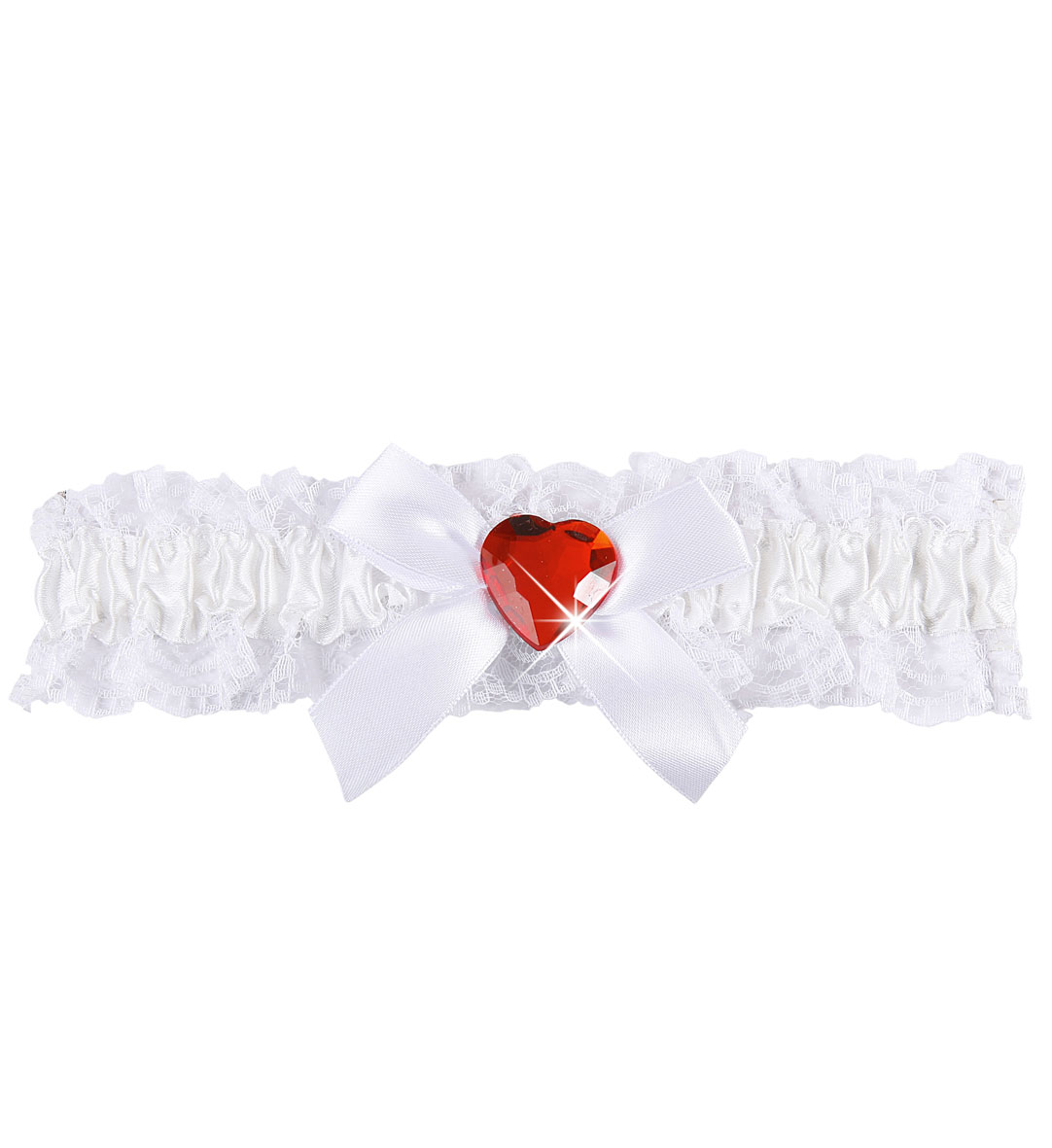 Questa giarrettiera e di colore bianco in pizzo con una gemma rossa a forma di cuore.Accessorio Bigiotteria, Travestimento, Halloween, Carnevale, cosplay
