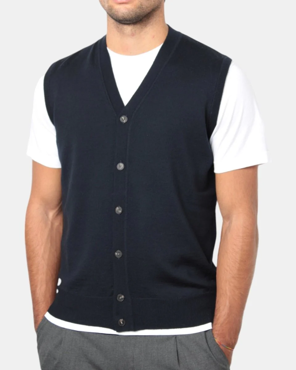 descrizione: il gilet 00041 di kangra è un capo versatile e raffinato, realizzato in 100% lana per garantire calore e morbidezza. la vestibilità regular e la classica abbottonatura frontale con scollo a v lo rendono perfetto per aggiungere un tocco di eleganza discreta a qualsiasi outfit. il colore grigio, sobrio e facile da abbinare, lo rende ideale per essere indossato sopra una camicia o un maglione, sia in contesti formali che casual.