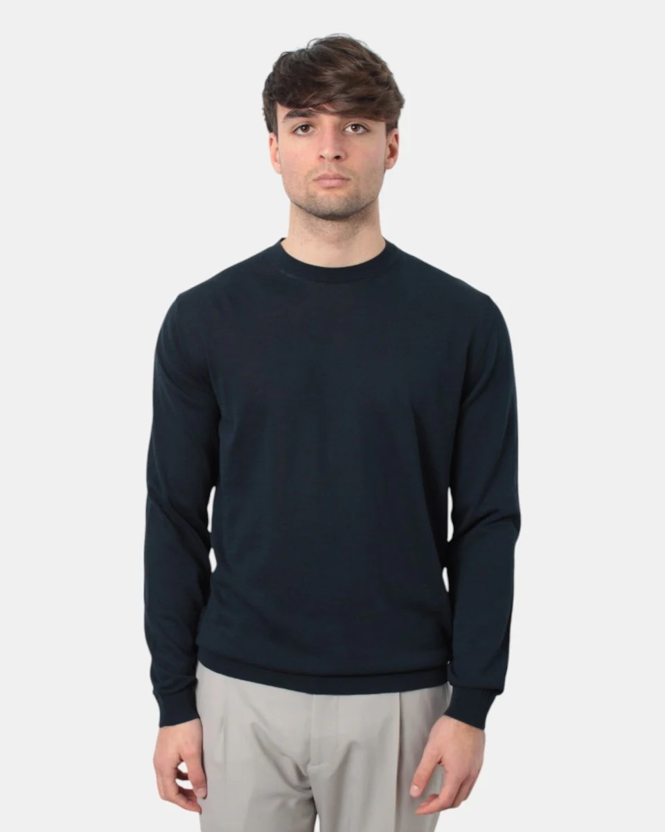 La maglia a girocollo di Bellwood presenta collo, fondo e polsi a costine, dalla mano fresca dovuta alla sua composizione in 100% cotone. Si consiglia lavaggio a massimo 30 gradi . Il modello è alto 1,78 m e indossa una 52