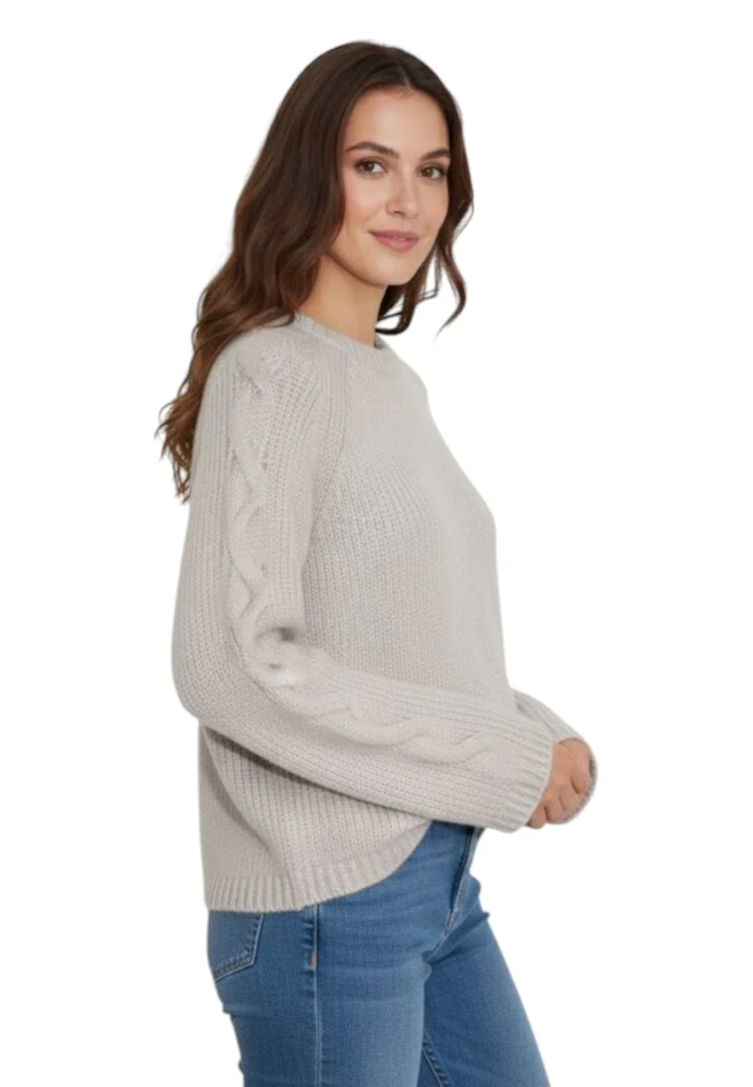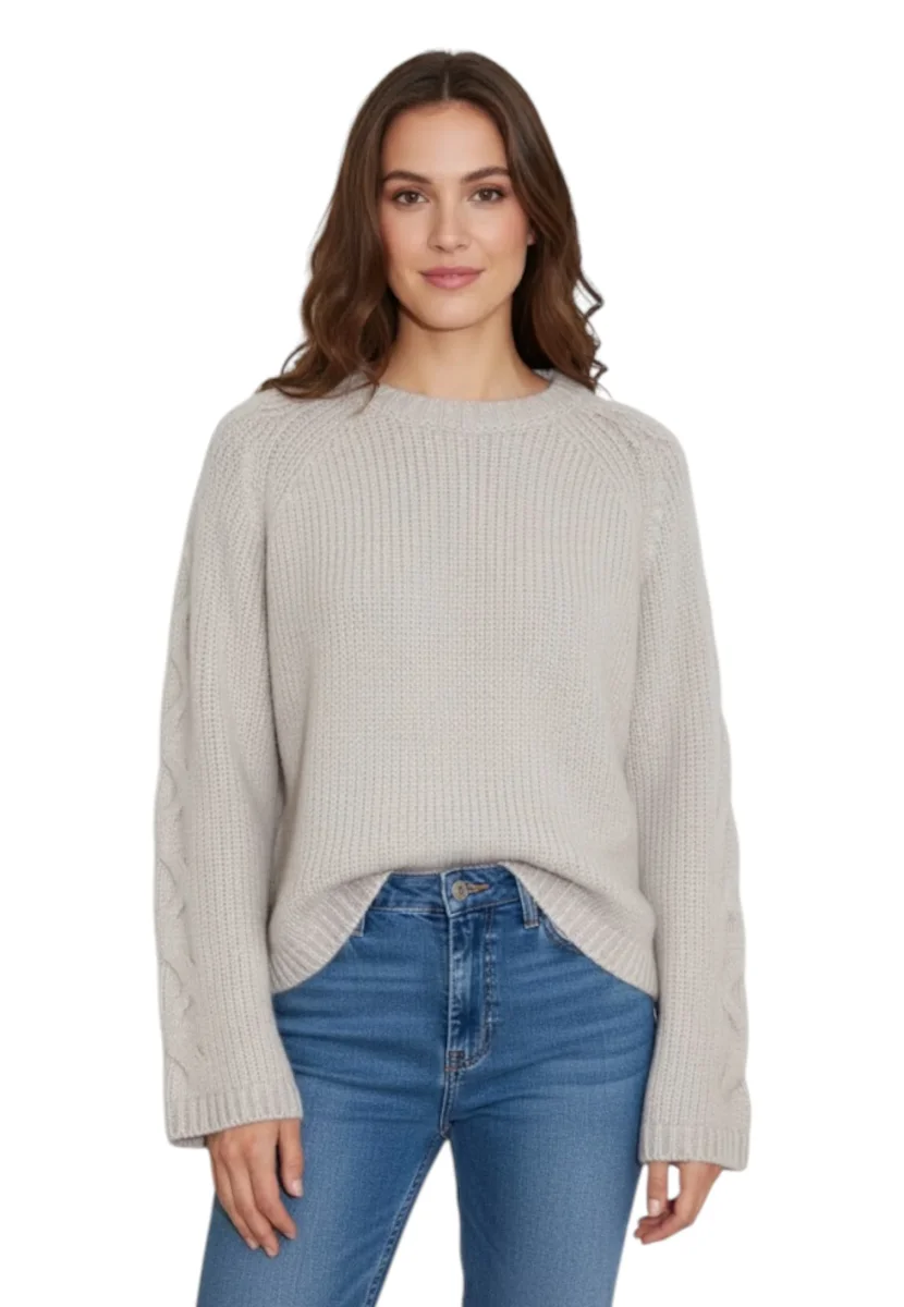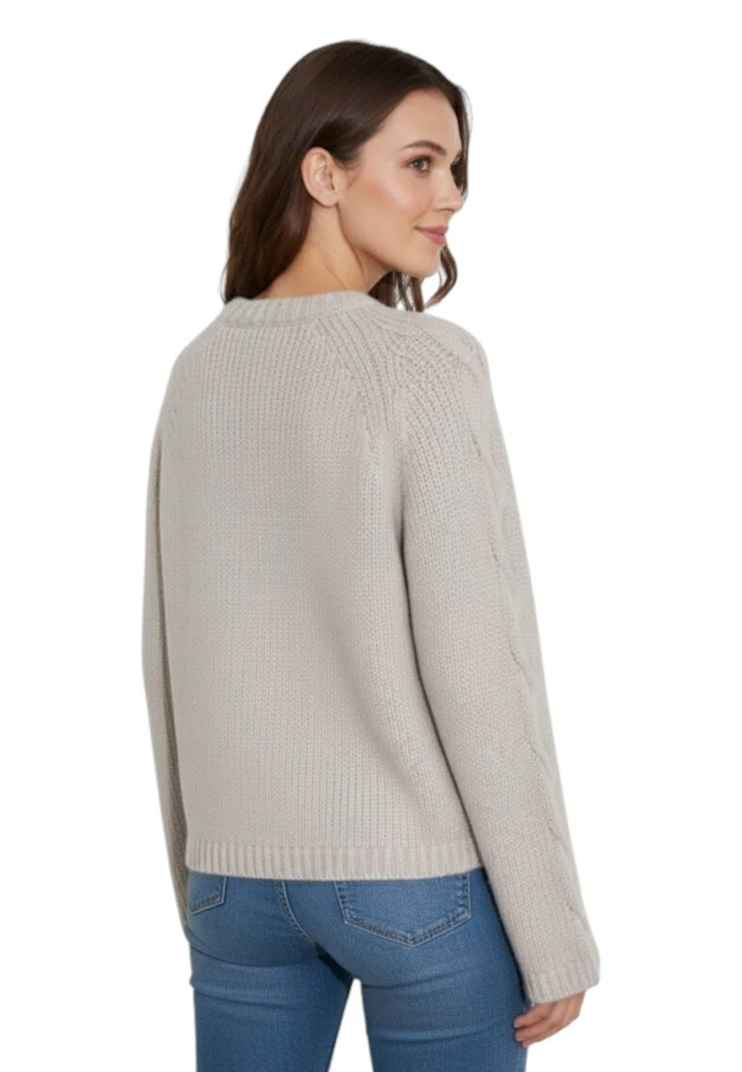 Il motivo a treccia conferisce carattere e texture al capo, valorizzando la lavorazione artigianale e la qualità dei filati pregiati.
