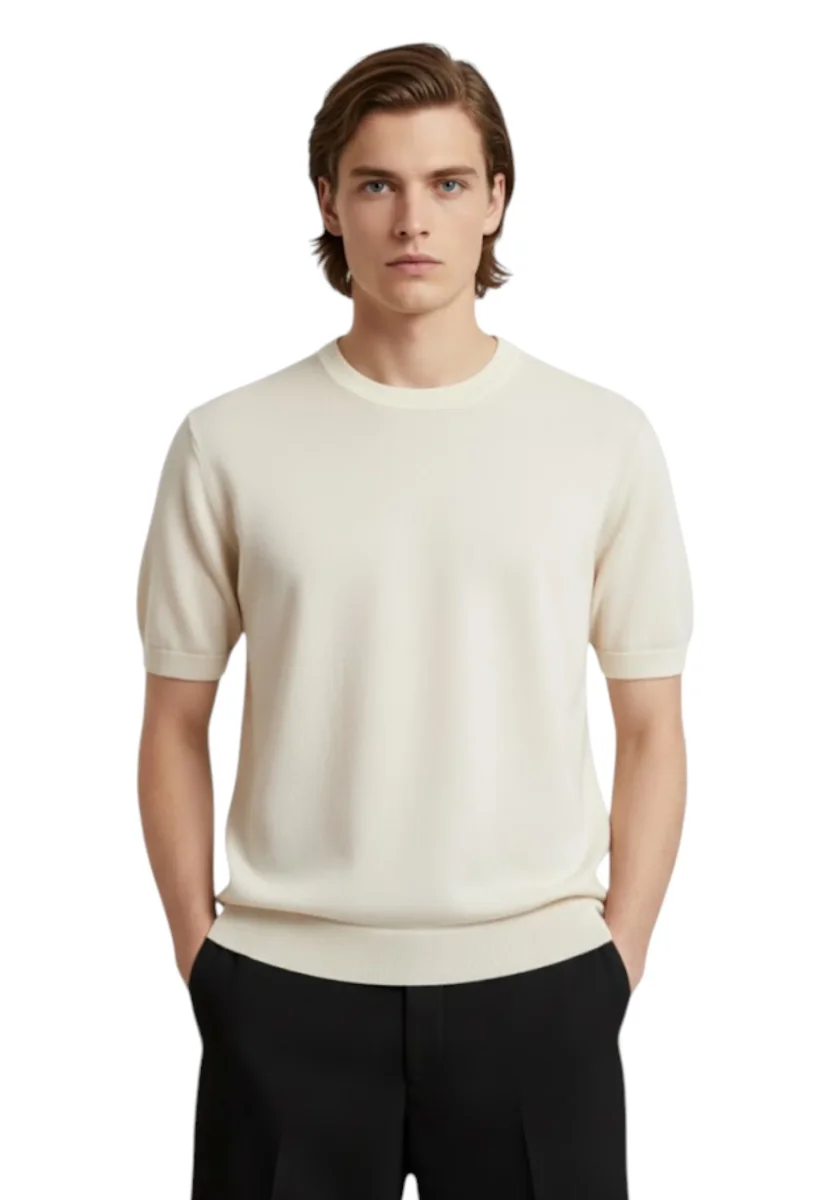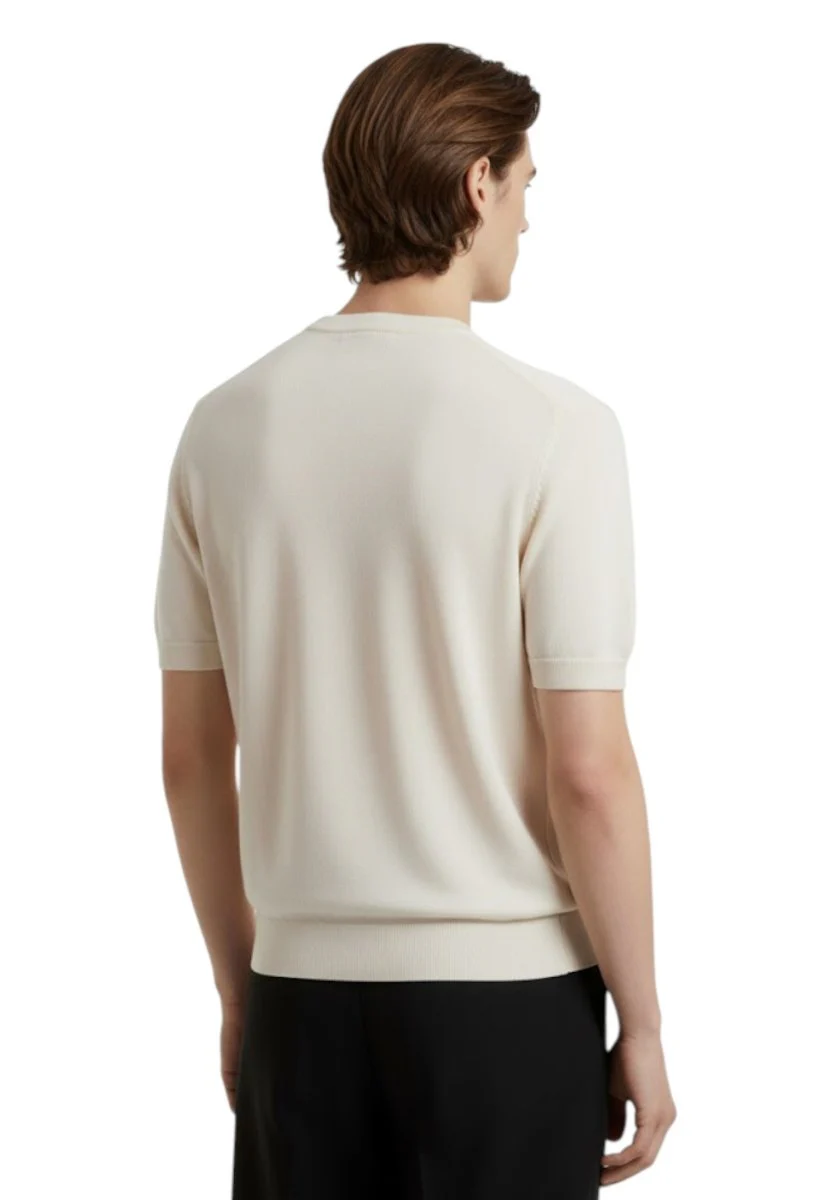 Essenziale e sofisticato, il girocollo mezza manica Kangra Avorio è il capo perfetto per un’eleganza discreta e contemporanea. Realizzato su finezza 12 in misto lana e cotone (50%/50%), unisce leggerezza e compattezza in una maglia ideale per le mezze stagioni o per look stratificati. Il colore avorio dona luminosità e versatilità, mentre la lavorazione rasata calata e le finiture a costine su collo, fondo e maniche completano una vestibilità regolare e confortevole. Un must-have minimal per uno stile pulito e senza tempo.