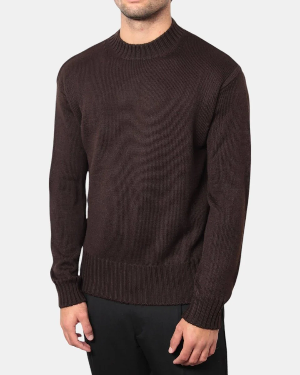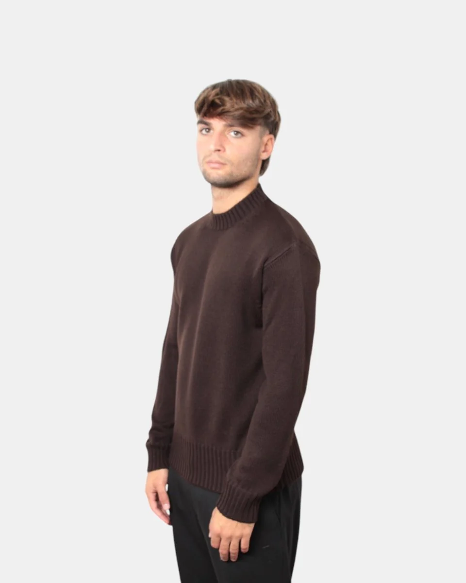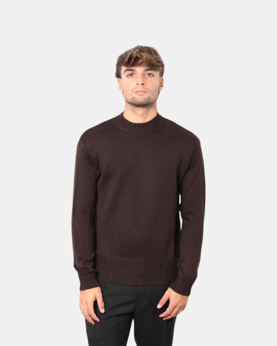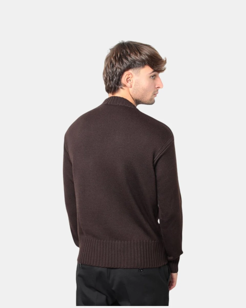 La maglia a girocollo di Daniele Fiesoli dalla lavorazione calata in finezza cinque presenta la sua composizione in 50% lana merino e 50% acrilico garantendo calore e lunga durata.