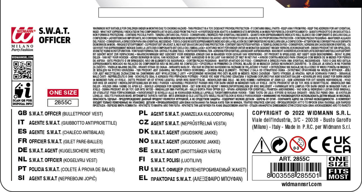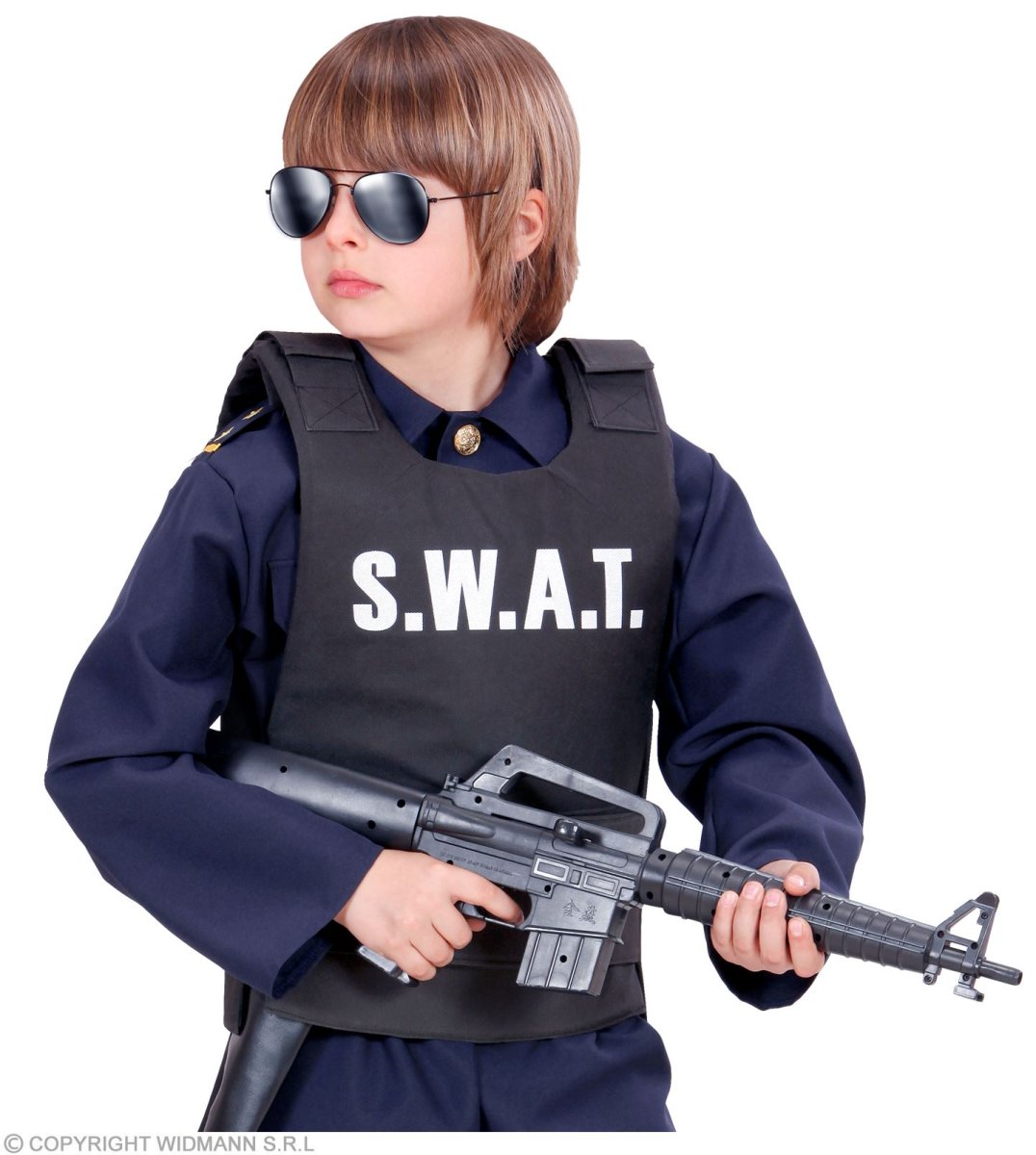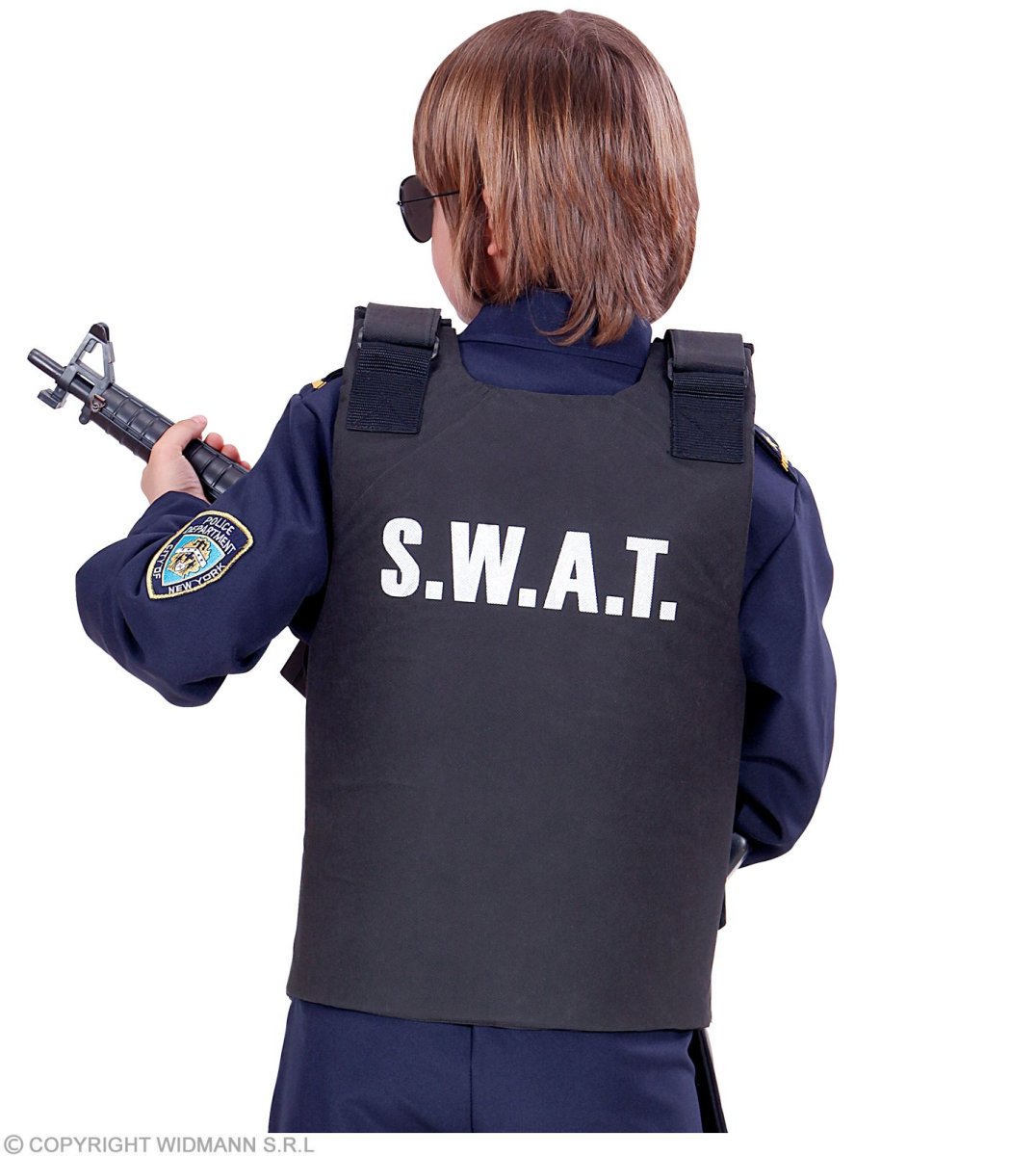 Questo gilet da poliziotto della Squadra Speciale per bambino è di colore nero (maglia, pantaloni, occhiali, arma e scarpe non inclusi). La parte interna è leggermente imbottita. Misure: 52 cm (altezza) x 46 cm (larghezza). Se il vostro bambino sogna di diventare un poliziotto da grande, perchè non fargli vivere il suo sogno con questo gilet? Perfetto a Carnevale o anche solo per un interminabile pomeriggio di giochi da solo o in compagnia dei suoi amici!