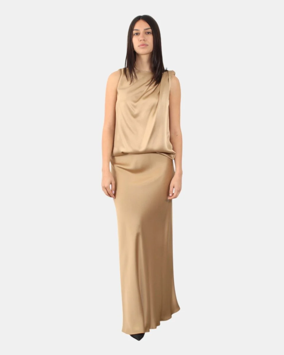La gonna di Liviana Conti presenta fantasia monocolore, elastico in vita, dalla mano fresca dovuta alla sua composizione in 71% acetato 29% viscosa. Si consiglia lavaggio a massimo 30 gradi. La modella è alta 1,68 m e indossa una 42