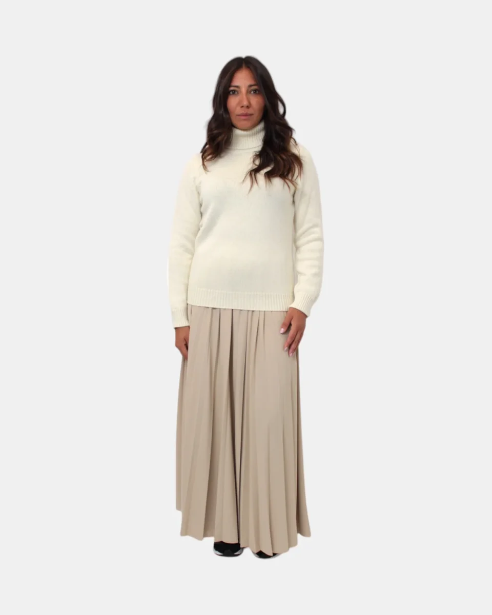 La gonna plissettata beige Max Mara è un capolavoro di eleganza e praticità. Realizzata in 100% poliestere, offre un tessuto leggero e resistente che mantiene la forma e si adatta al corpo con grazia. Il design plissettato crea un effetto di movimento fluido e dinamico, mentre l’elastico in vita a