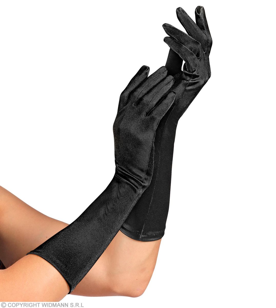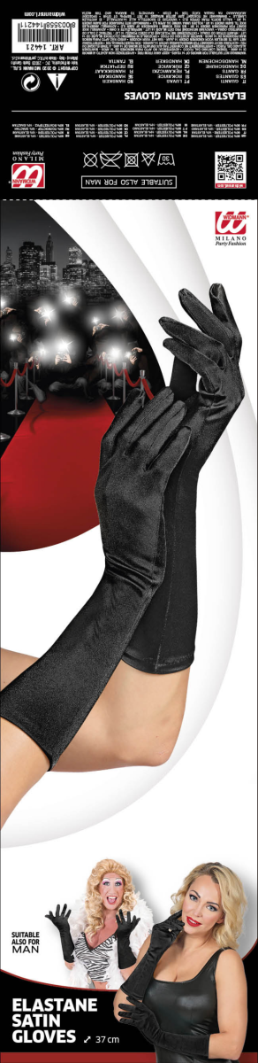 Guanti in raso elastan neri 40 cm