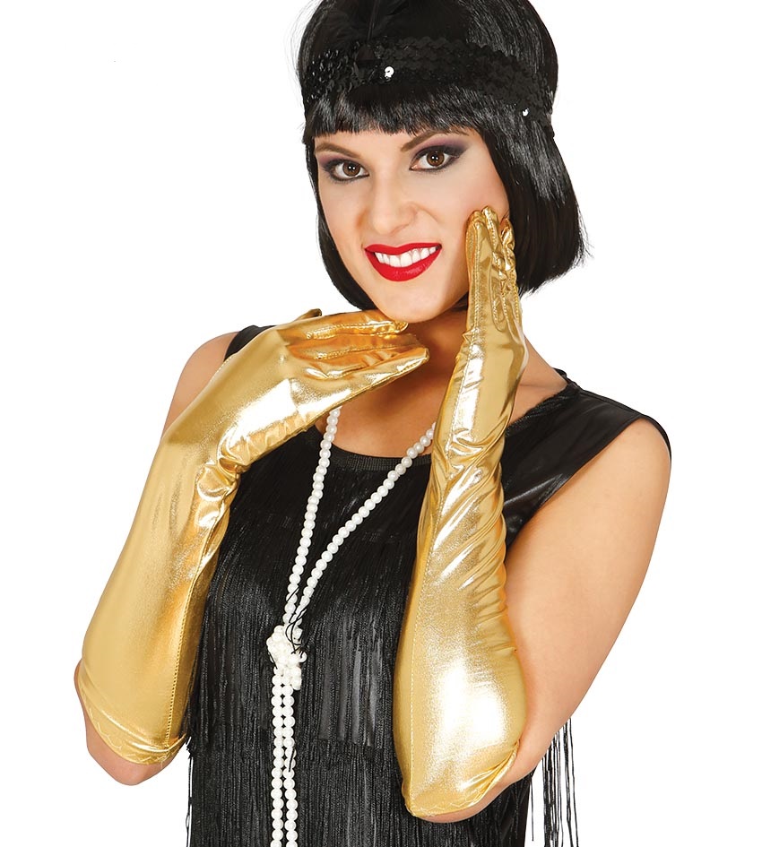 Guanti oro iridescenti lunghi 44cm