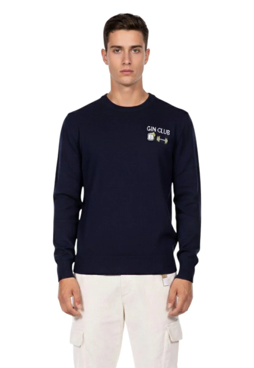 Il maglione girocollo a manica lunga di MC2 Saint Barth con ricamo “Gin Club” è pensato per chi ama distinguersi con uno stile rilassato ma curato. Realizzato con un pregiato mix di lana, cashmere, viscosa e poliammide, unisce comfort termico e morbidezza al tatto.