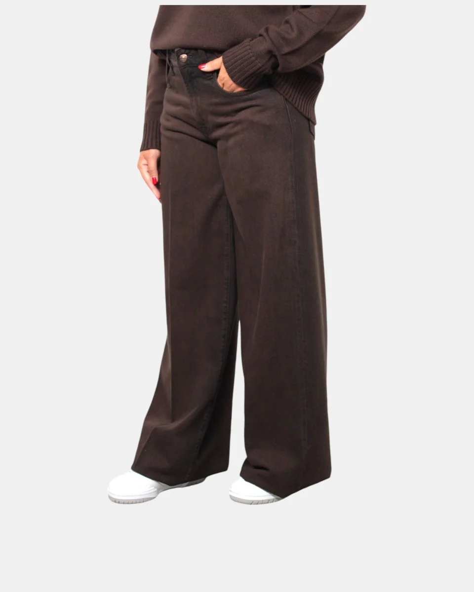 Modello: Jeans marrone, con un design classico e senza tempo. Il taglio versatile e il colore ricco rendono questi jeans un capo adatto a molteplici occasioni, dal look casual al più raffinato.