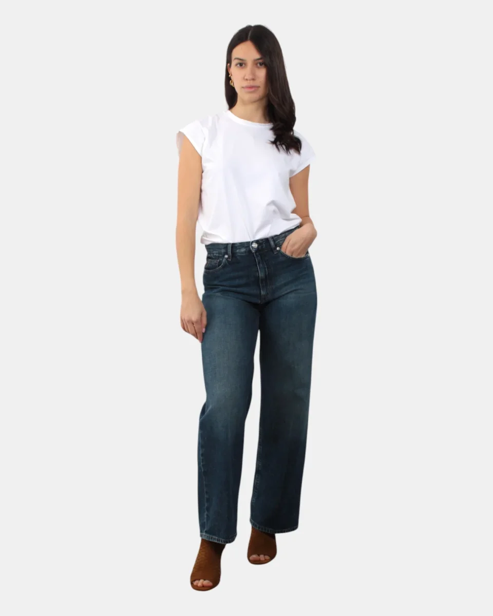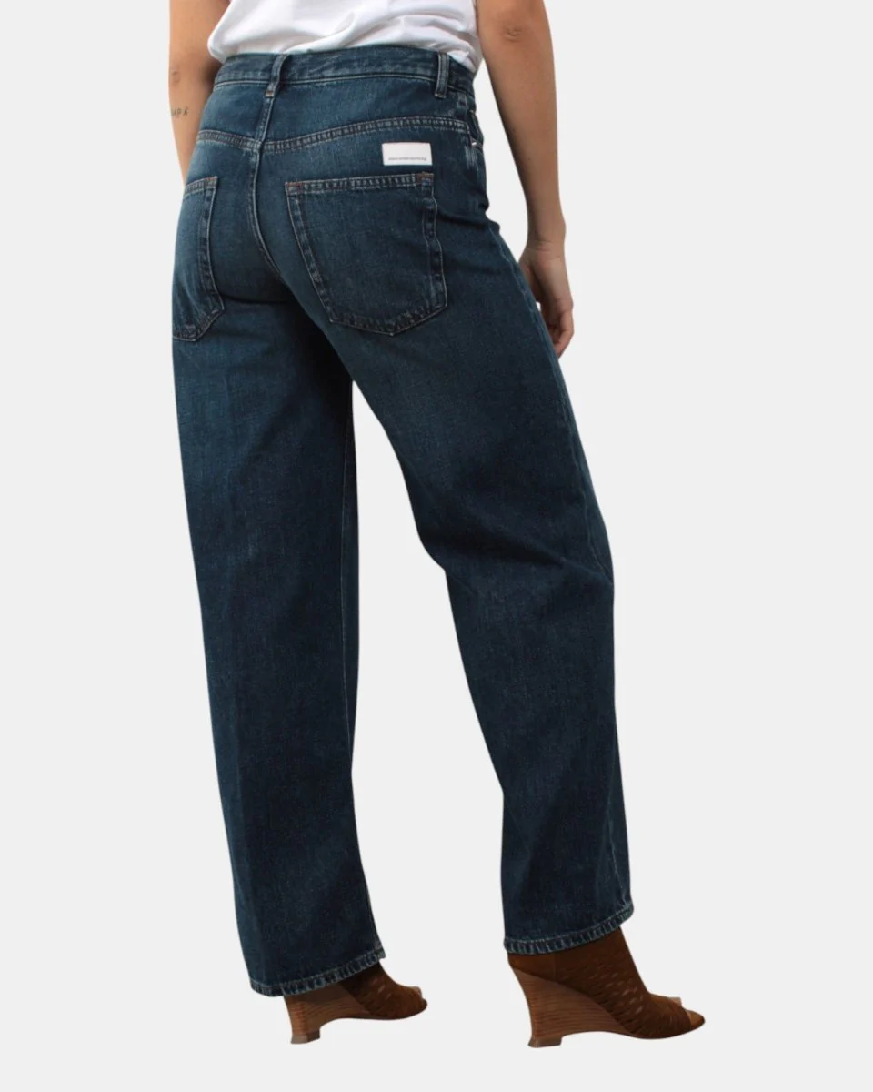 Il jeans di Nine in the Morning presenta chiusura con zip e bottone, due tasche frontali, due sul retro, vestibilità ampia, logo brand in contrasto sulla tasca posterioredalla mano fresca dovuta alla sua composizione in 100% cotone. Si consiglia lavaggio a massimo 30 gradi. La modella è alta 1,68 m e indossa una 26