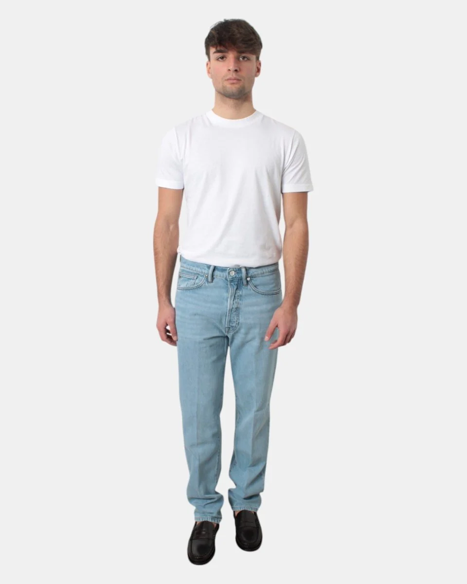 Il jeans di Nine in the Morning presenta lavaggio chiaro, tasche frontali, due tasche a toppa sul retro con dettaglio logo brand, chiusura a bottoni. vestibilità leggermente over, dalla mano fresca dovuta alla sua composizione in 100% cotone. Si consiglia lavaggio a massimo 30 gradi. Il modello è alto 1,78 m e indossa una 31