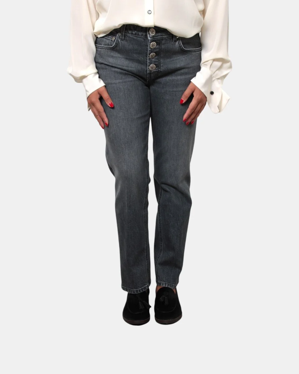 Modello: Jeans 5 tasche, un design classico e funzionale che include tasche frontali e posteriori per una praticità ottimale. Il design a cinque tasche è un grande classico del denim, perfetto per un look casual e versatile.