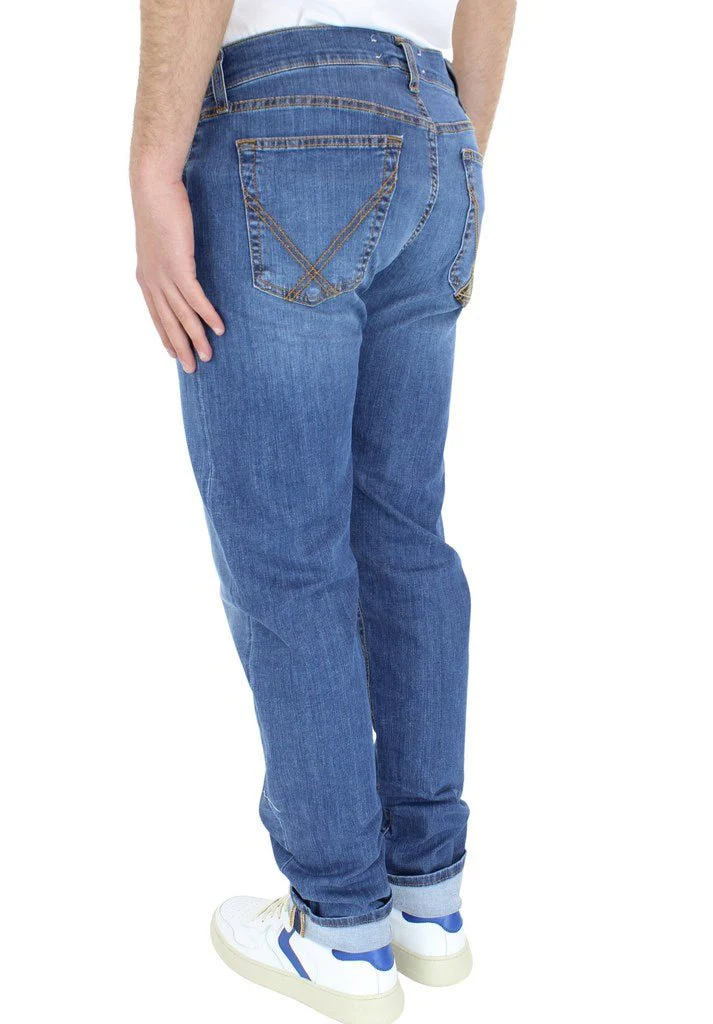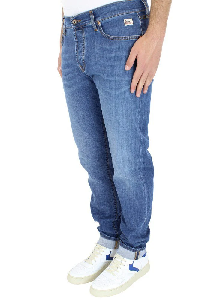 Il jeans di Roy Roger’s è realizzato in 98% cotone 2% elastan. Il modello presenta chiusura frontale con zip a scomparsa e bottone. Il classico jeans cinque tasche presenta loghi applicati sul fronte e retro. Vestibilità slim-fit. Il modello è alto 180 cm ed indossa una taglia 32. Si consiglia di lavare il capo a mano.