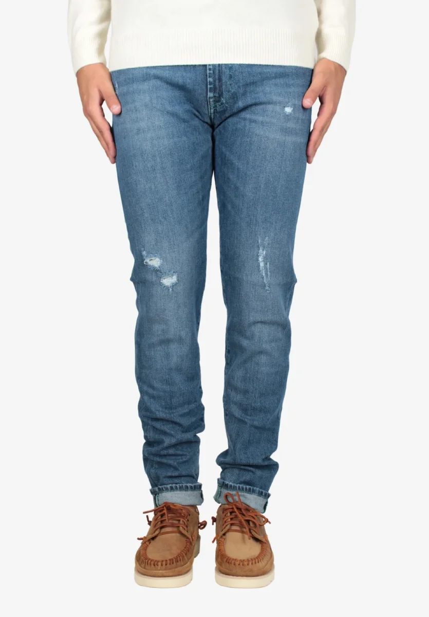 Il jeans di Roy Roger’s è realizzato in 98% cotone e 2% elastan. Il modello presenta chiusura frontale con zip a scomparsa, bottone logato e tasche posteriori con logo applicato. Vestibilità regolare. Il modello è alto 180 cm ed indossa una taglia 33. Si consiglia di lavare il capo a massimo 30°.