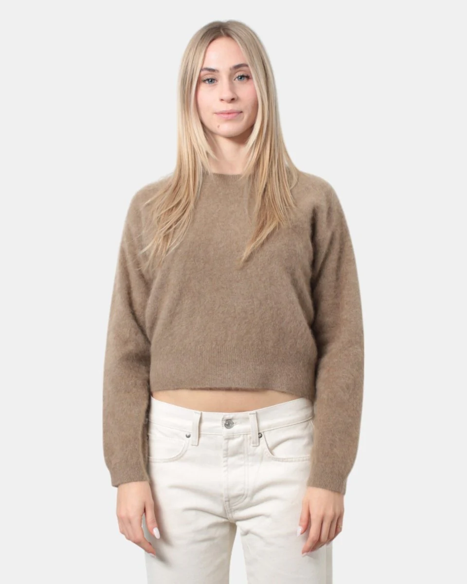 La maglia a girocollo di Jucca dall’effetto peloso presenta collo, fondo e polsi a costine, dalla mano soffice e calda dovuta alla sua composizione in 100% raccoon. Si consiglia lavaggio a secco. La modella è alta 1,67 m e indossa una M