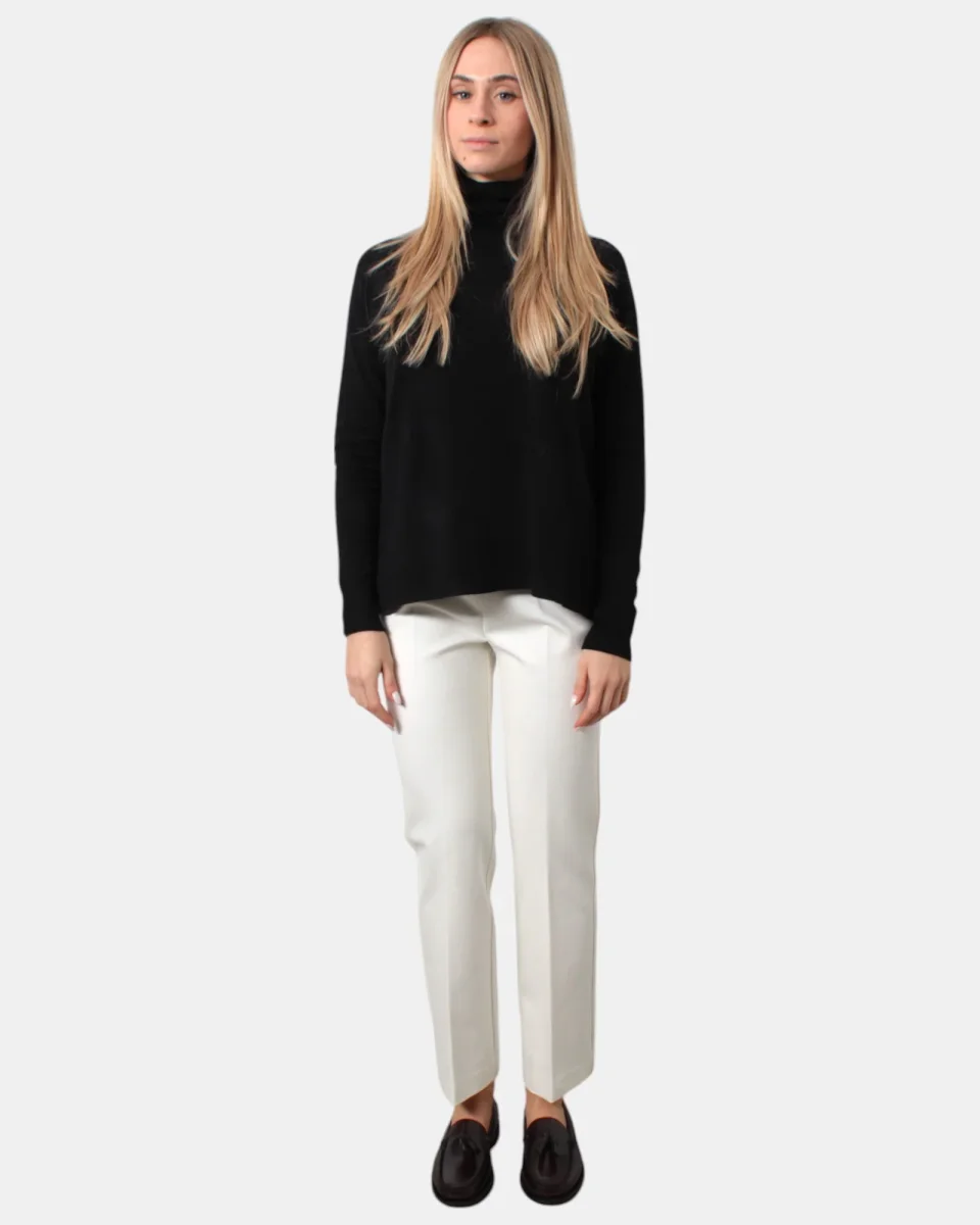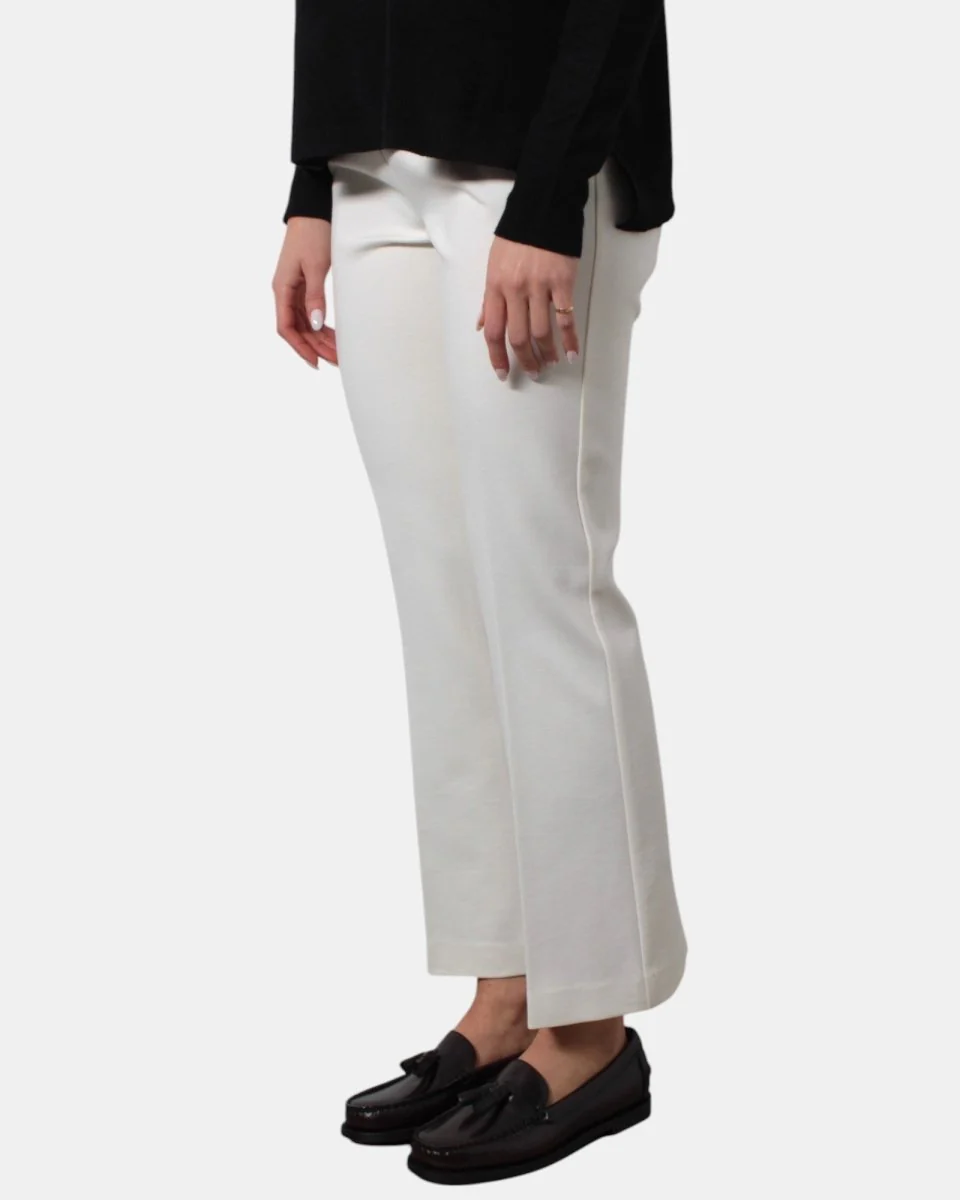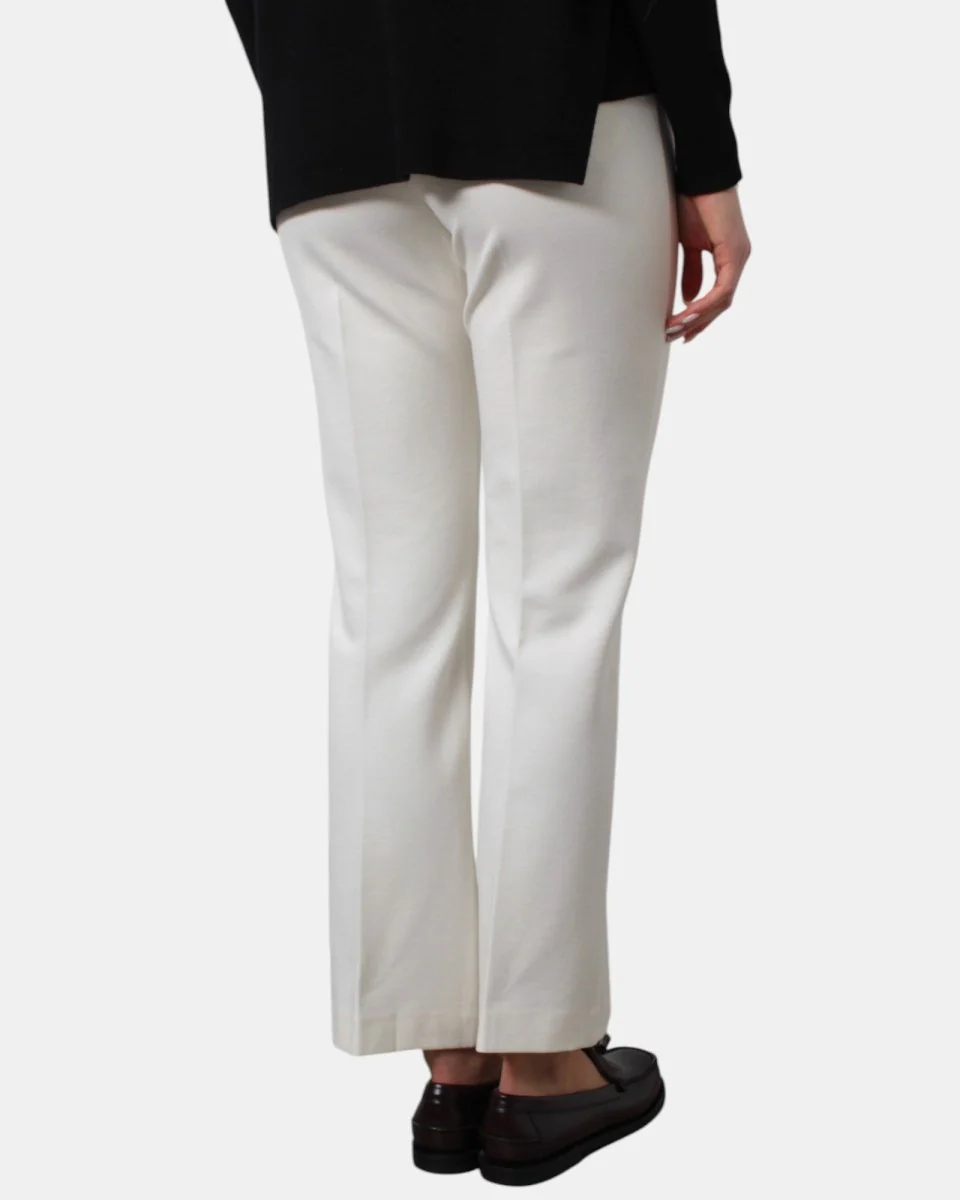 Il pantalone di Jucca presenta chiusura a zip frontale, modello a zampetta . Si consiglia lavaggio a max 30 gradi. La modella è alta 1,69 m e indossa una 40