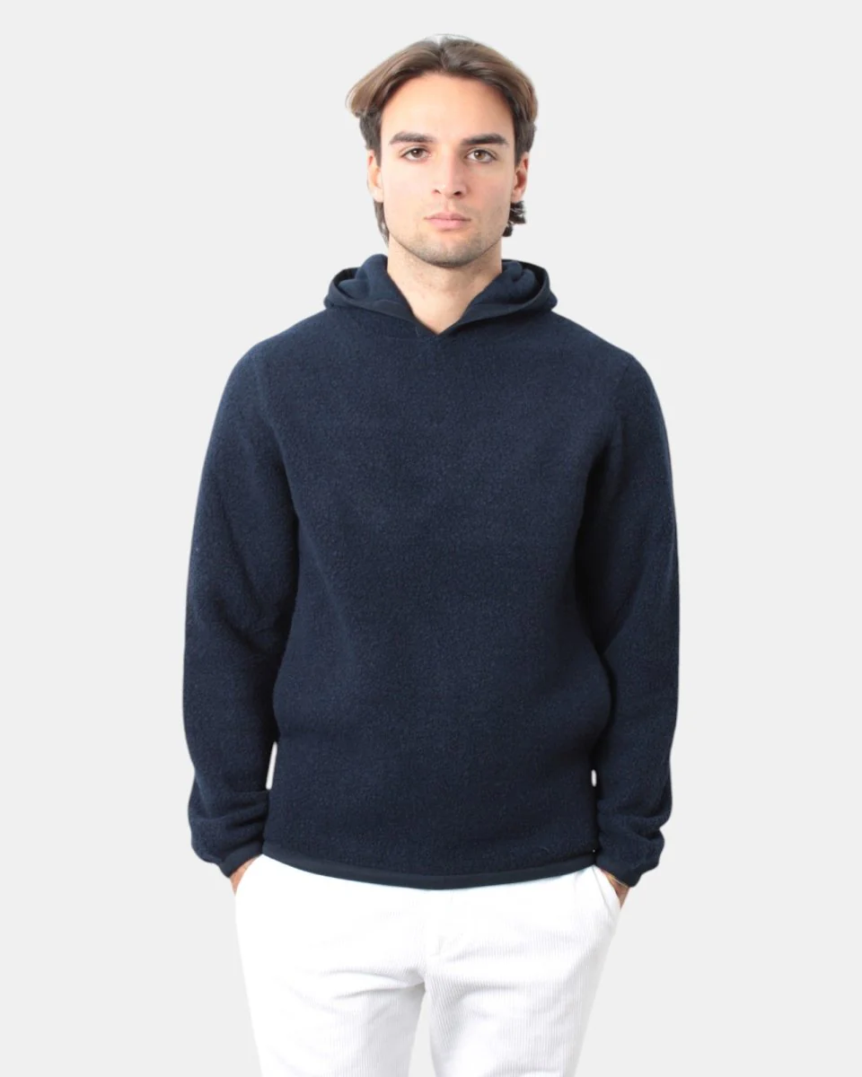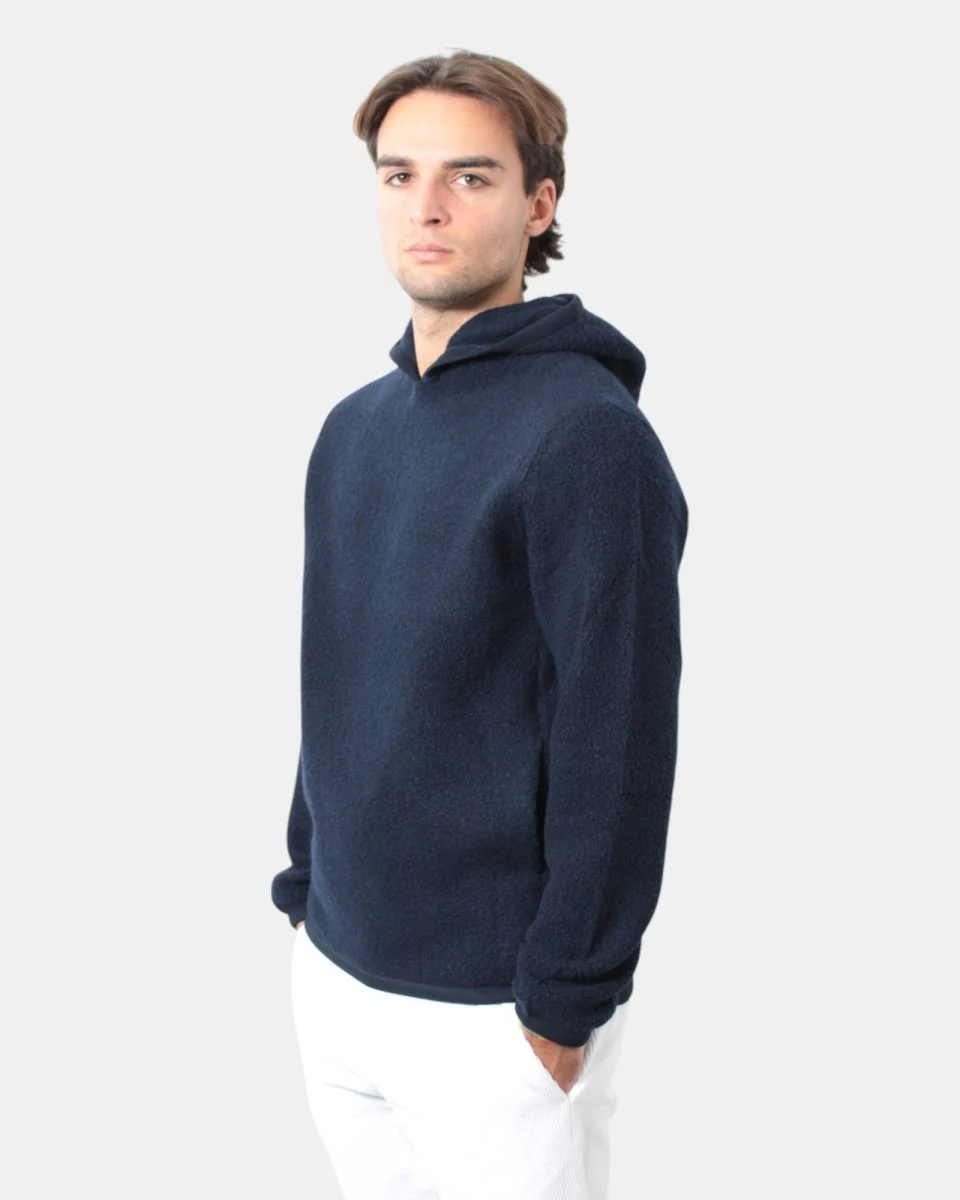 La felpa con cappuccio di K-Way presenta fantasia effetto pelliccia corta, vestibilità over dalla mano morbida e calda dovuta alla sua composizione in 63% lana, 24% poliammide e 13% poliestere. Si consiglia lavaggio a mano. Il modello è alto 1,79 m e indossa una M