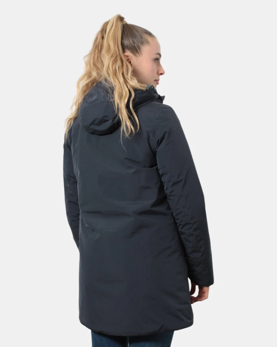 Il giubbotto lungo di Kway con cappuccio presenta chiusura con zip centrale, due tasche laterali con chiusura a zip e polsi con elastico. Internamente è rivestito in marmotta ed è composto in 100% poliestere, esternamente è composto in 100% poliammide. Si consiglia il lavaggio a max 30 gradi. La modella è alta 1,65 m e indossa una M