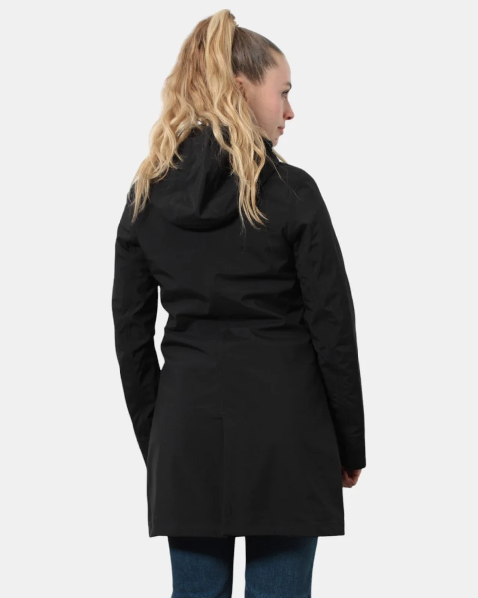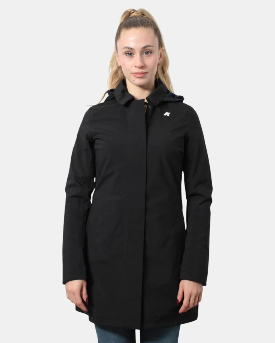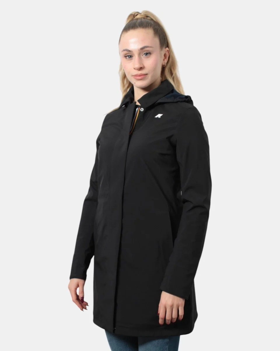 La giacca lunga di K-Way con cappuccio estraibile modello Mathy Bonded presenta chiusura frontale con zip, due tasche frontali oblique con chiusura a zip nascosta, minilogo sul petto e maniche regolabili con chiusura a bottoni, sul retro presenta spacco centrale. Internamente è composto per il 100% da poliamide, esternamente per l’85% da poliestere e 15% poliuretano. Si consiglia lavaggio delicato a max 40 gradi. La modella è alta 1,65 m e indossa una L