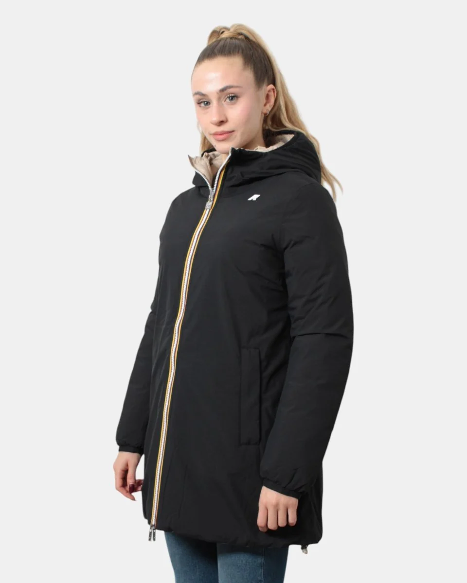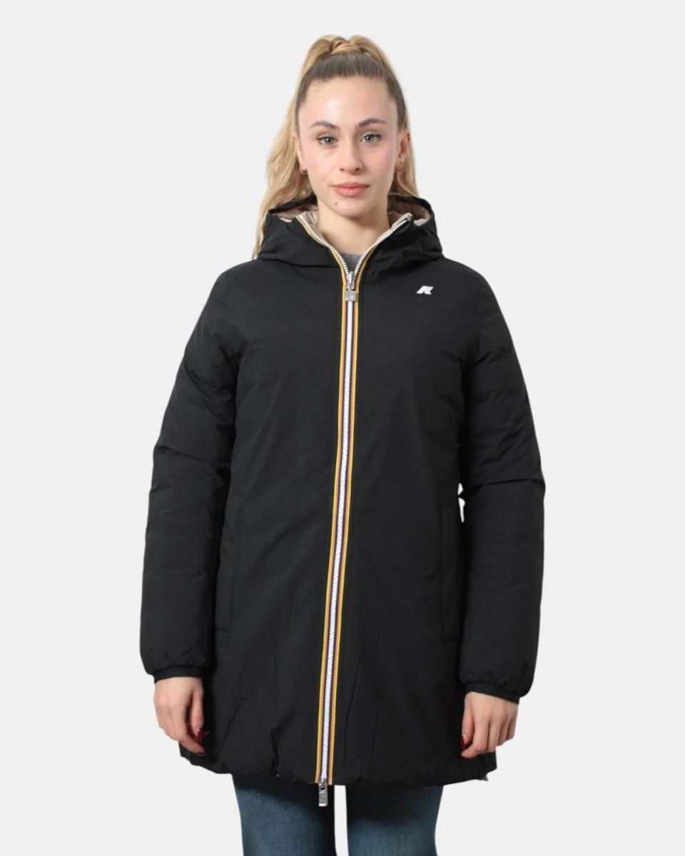 Il giubbotto reversibile di K-Way presenta chiusura frontale con zip, due tasche frontali oblique con chiusura a zip nascosta, minilogo sul petto e maniche con elastico. Internamente presenta losanghe a riquadri ed è composto per il 100% da poliamide, esternamente per il 100% da poliestere. Si consiglia lavaggio delicato a max 40 gradi. La modella è alta 1,65 m e indossa una L