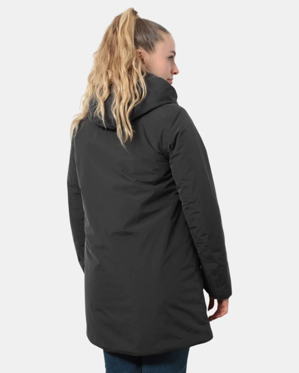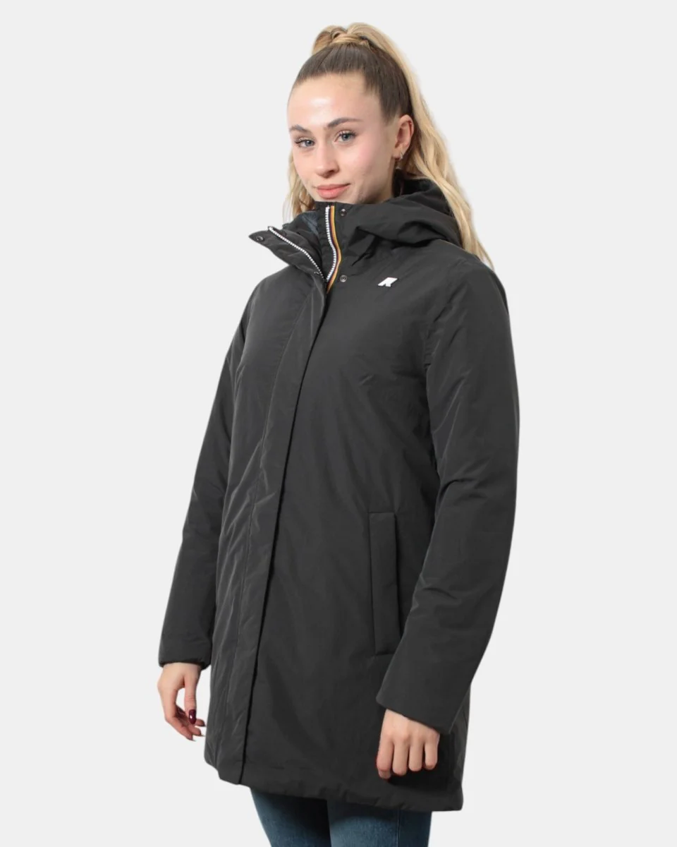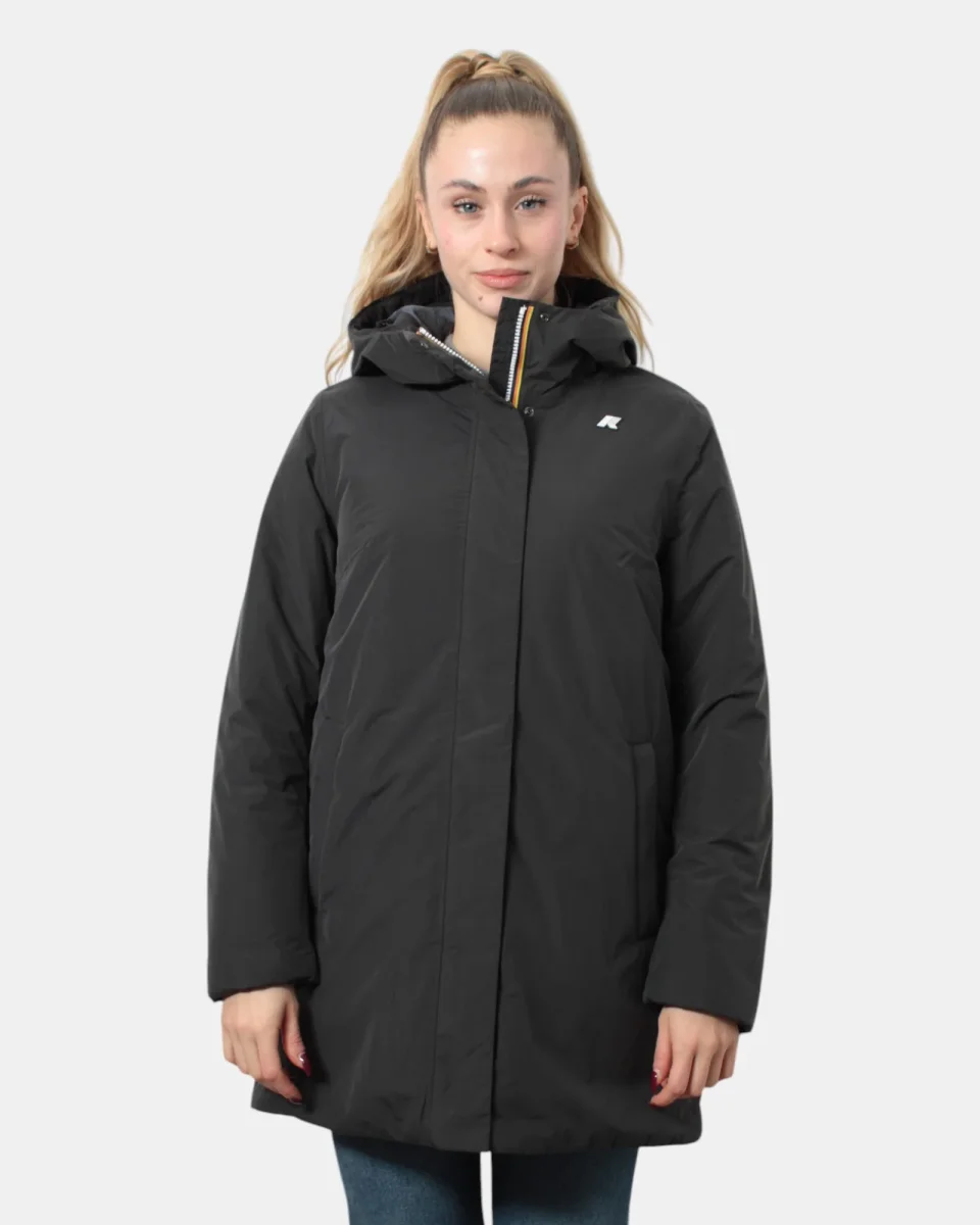 Il giubbotto lungo di Kway con cappuccio presenta chiusura con zip centrale, due tasche laterali con chiusura a zip e polsi con elastico. Internamente è rivestito in marmotta ed è composto in 100% poliestere, esternamente è composto in 100% poliammide. Si consiglia il lavaggio a max 30 gradi. La modella è alta 1,65 m e indossa una M