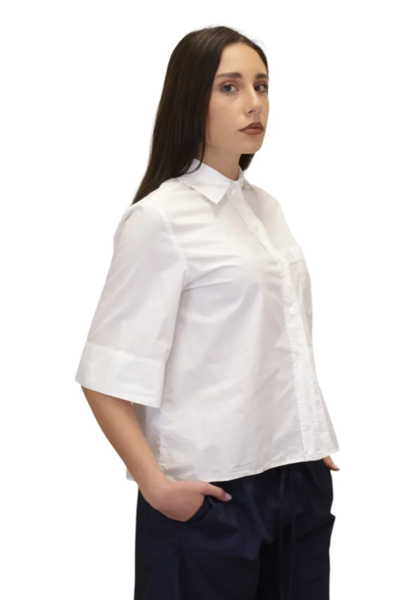 La camicia Lara di ACADEMIA è un capo femminile elegante e versatile, realizzato in 100% cotone di alta qualità per garantire comfort e traspirabilità tutto il giorno. Il design a manica corta con chiusura a bottone la rende perfetta per outfit casual o look più raffinati, ideale per la stagione calda. Questo modello unisce stile e praticità, valorizzando ogni silhouette e aggiungendo un tocco di classe al guardaroba femminile. Perfetta da abbinare a pantaloni o gonne per un look contemporaneo e femminile.