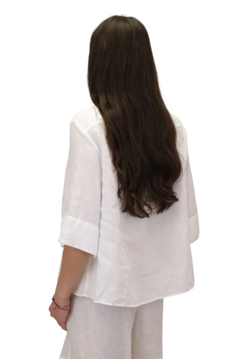 Leggera e naturale sulla pelle, la camicia in lino donna Lara valorizza ogni silhouette con uno stile semplice ma sofisticato. Perfetta da abbinare a pantaloni in lino, jeans o gonne midi, è un capo versatile pensato per una donna dinamica che ama la qualità dei tessuti naturali.