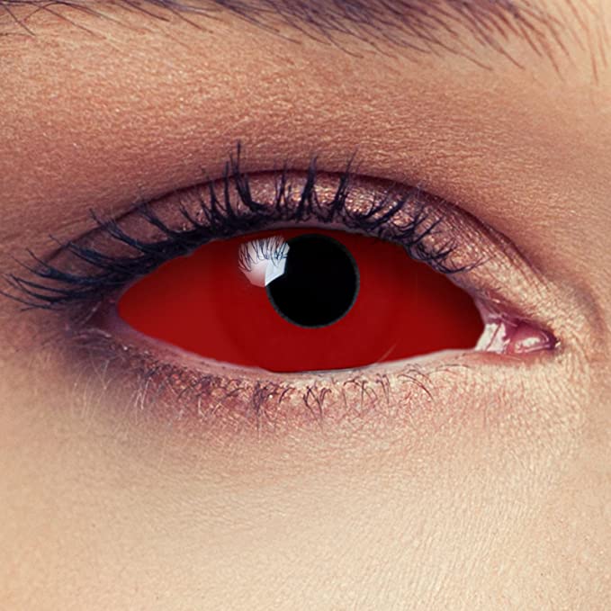 Le lenti a contatto da brividi hanno la particolarità di essere leggermente più grandi delle normali lenti, in questo modo doneranno l’effetto di un occhio completamente rosso con pupilla nera. Hanno circa 22mm di diametro ed hanno un buco al centro per assicurarti una buona visibilità.