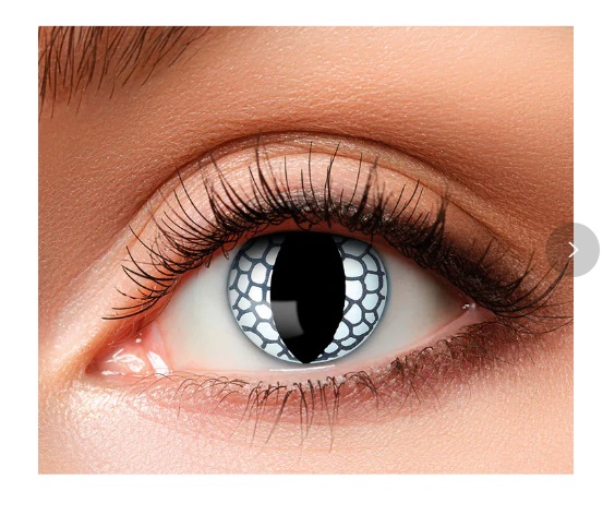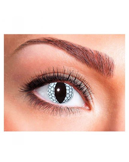 Con queste lenti bianche per Halloween, vi sentirete presto un vero drago. Le lenti hanno pupille allungate circondate da squame come un rettile o un drago. È anche molto bello usare queste lenti con un tema di dinosauri. Sono lenti morbide ad immersione senza prescrizione.