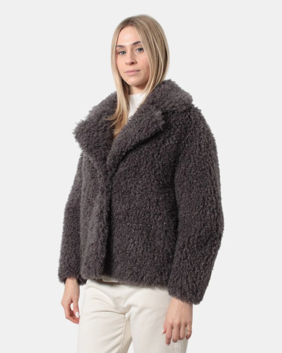 La pelliccia con cappuccio di Leon&loulou in pelliccia sintetica presenta rever, pelo arricciato su tutto il rivestimento del capo, chiusura frontale con gancetti e due tasche frontali oblique. Il capo dalla mano soffice e calda è composto per il 100% da poliestere. Si consiglia il lavaggio del capo a secco. La modella è alta 1,67 m e indossa una M