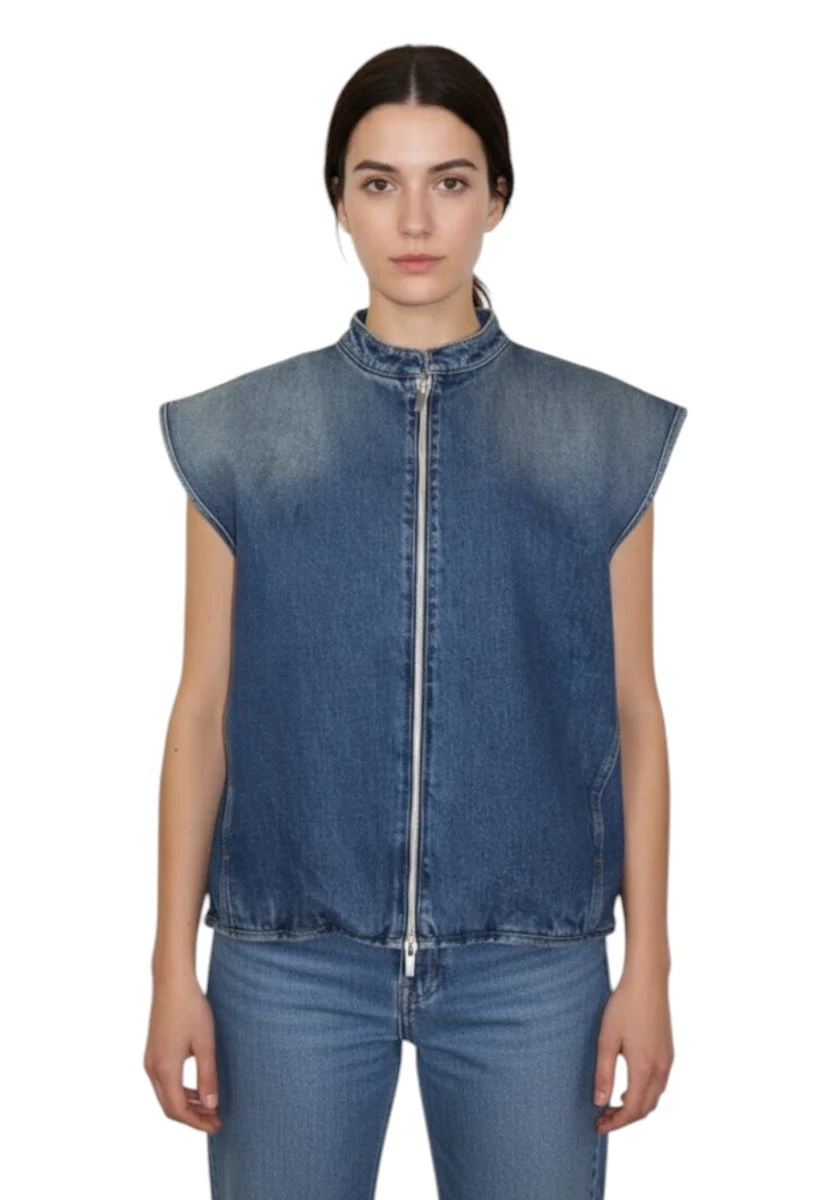 Con il suo design senza maniche e la cerniera frontale, il gilet è ideale per creare look stratificati con facilità. Il cotone puro garantisce una sensazione piacevole sulla pelle, rendendolo adatto per ogni stagione. Il lavaggio denim offre un’estetica intramontabile che si abbina perfettamente con jeans o pantaloni casual.