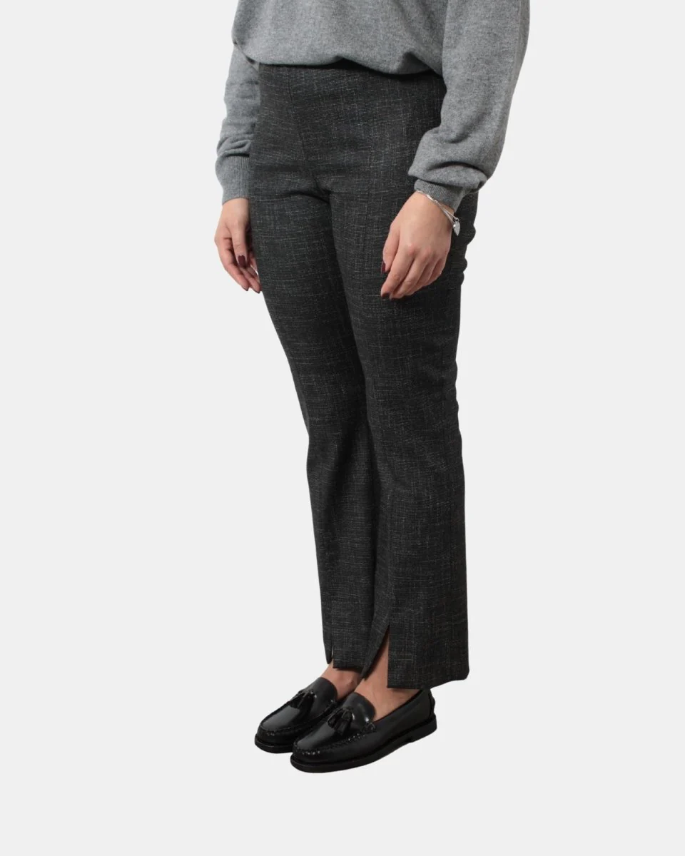 Il pantalone di Liviana Conti presenta elastico con coulisse, due spacchetti sul fondo , dalla mano morbida dovuta alla sua composizione in 57% viscosa, 19% lana vergine, 13% cotone, 10% poliammide e 1% elastan. Si consiglia lavaggio a massimo 30 gradi. La modella è alta 1,67 m e indossa una 38