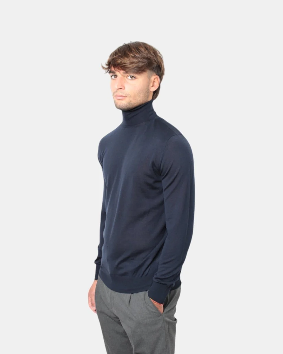 Modello: Maglia a dolcevita, un classico versatile che offre calore e stile ineguagliabili.