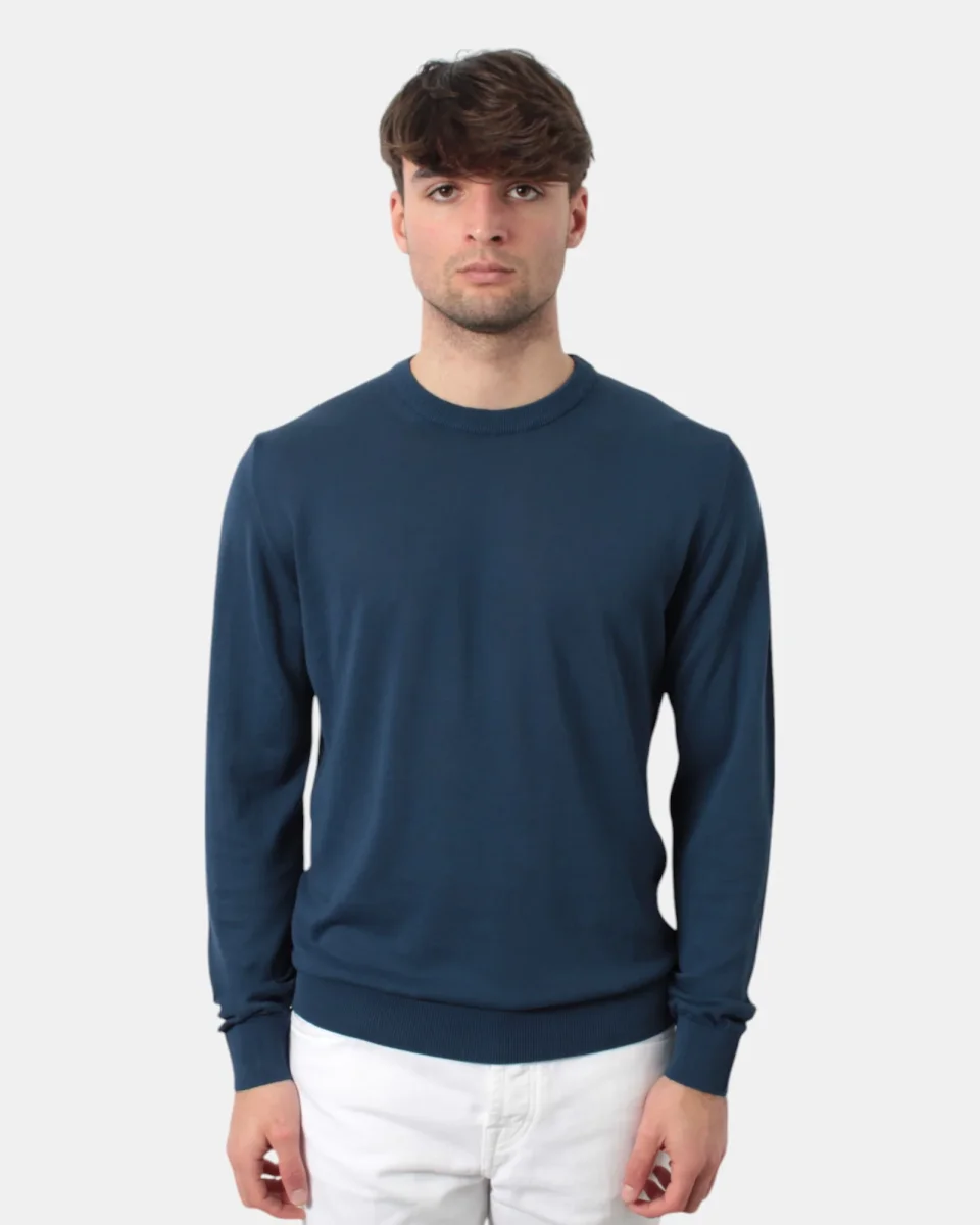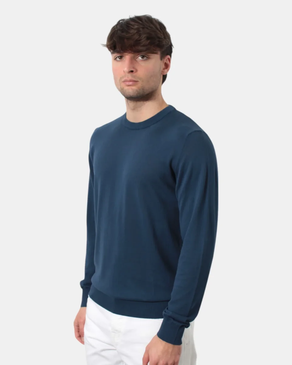 maglia a girocollo in cotone crepe – w1715 blu indigo