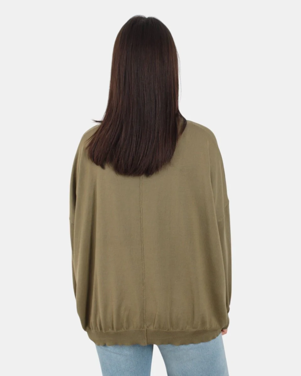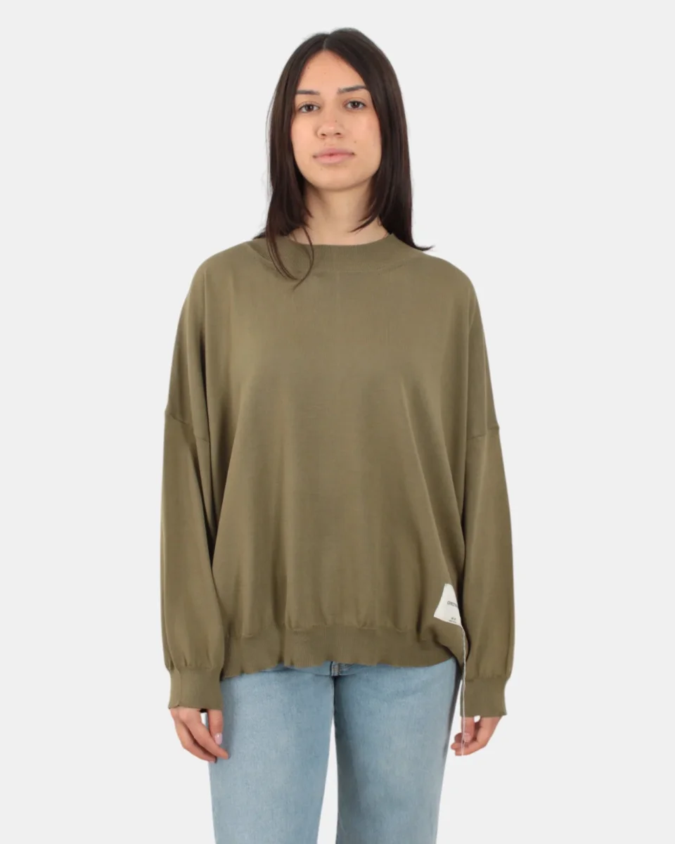La maglia a girocollo di Jei-O presenta collo, fondo e maniche a costine, patch brand sul fondo, dalla mano fresca dovuta alla sua composizione in 100% cotone. Si consiglia lavaggio a mano. La modella è alta 1,68 m e indossa una S
