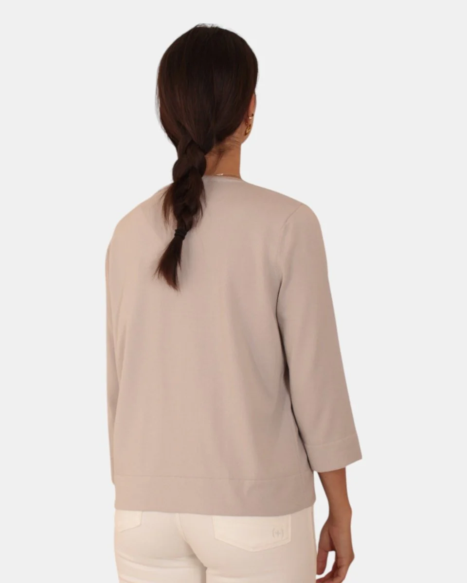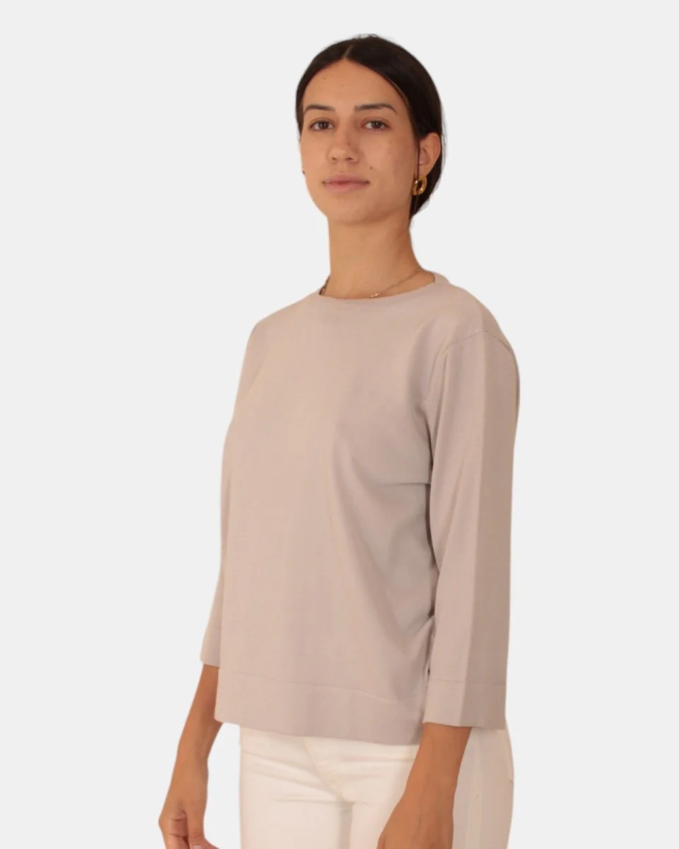 La maglia a girocollo di Kangra è realizzata in 100% cotone e presenta maniche dritte per un look pulito ed essenziale. Si consiglia lavaggio delicato a massimo 30 gradi. La modella è alta 1,68 m e indossa una taglia 42.