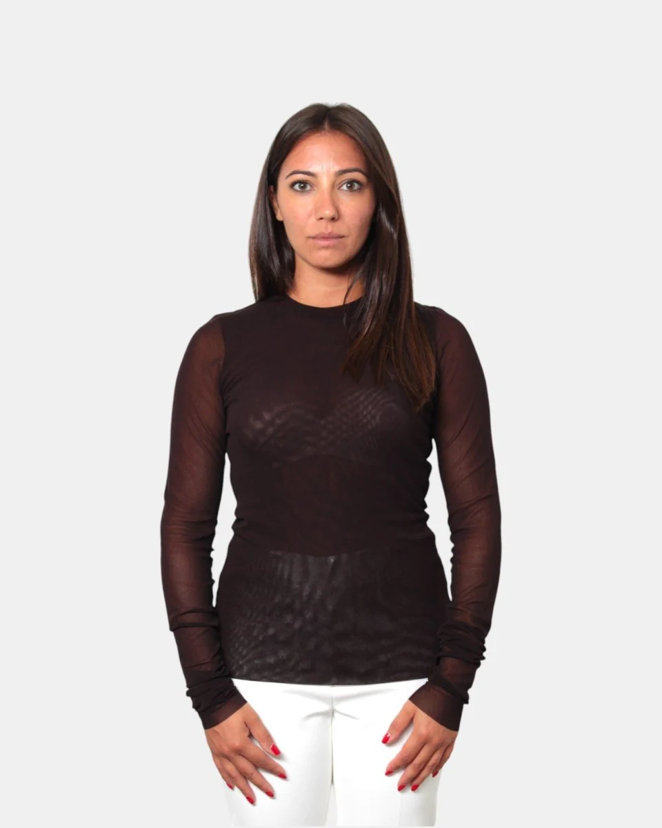 Modello: Manica lunga con effetto semi-trasparente, ideale per creare outfit moderni e audaci. Un capo perfetto da indossare da solo o come sottogiacca per un tocco di originalità.