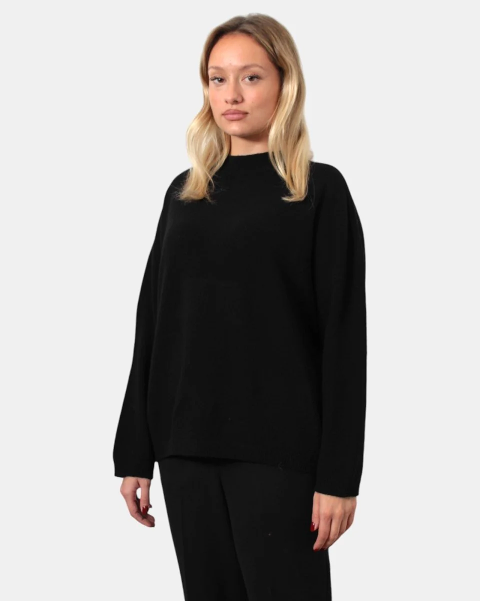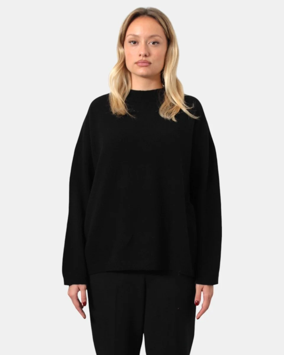 La maglia a girocollo di Daniele Fiesoli con polsi, fondo e collo a costine, dalla mano calda e corposa dovuta dalla sua composizione 100% lana merino. Si consiglia lavaggio amano. La modella è alta 1,67 e indossa una S