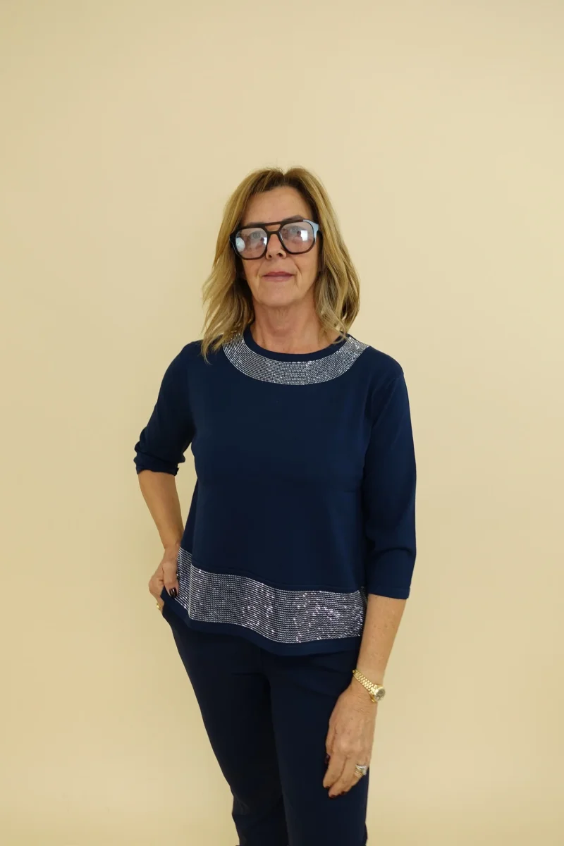 Maglia a girocollo con brillanti