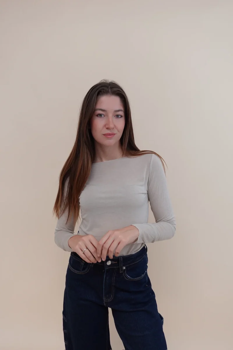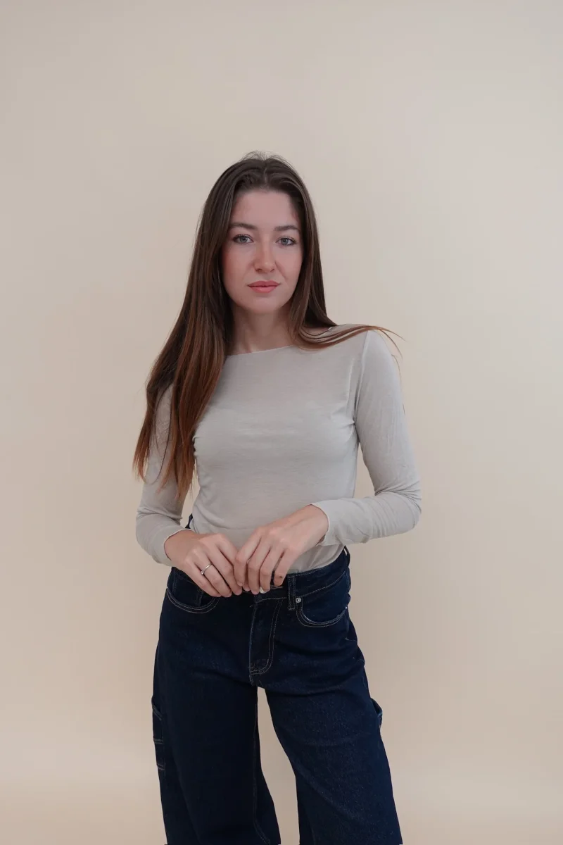 Maglia in misto cachemire, con collo a girocollo, tessuto elasticizzato aderente