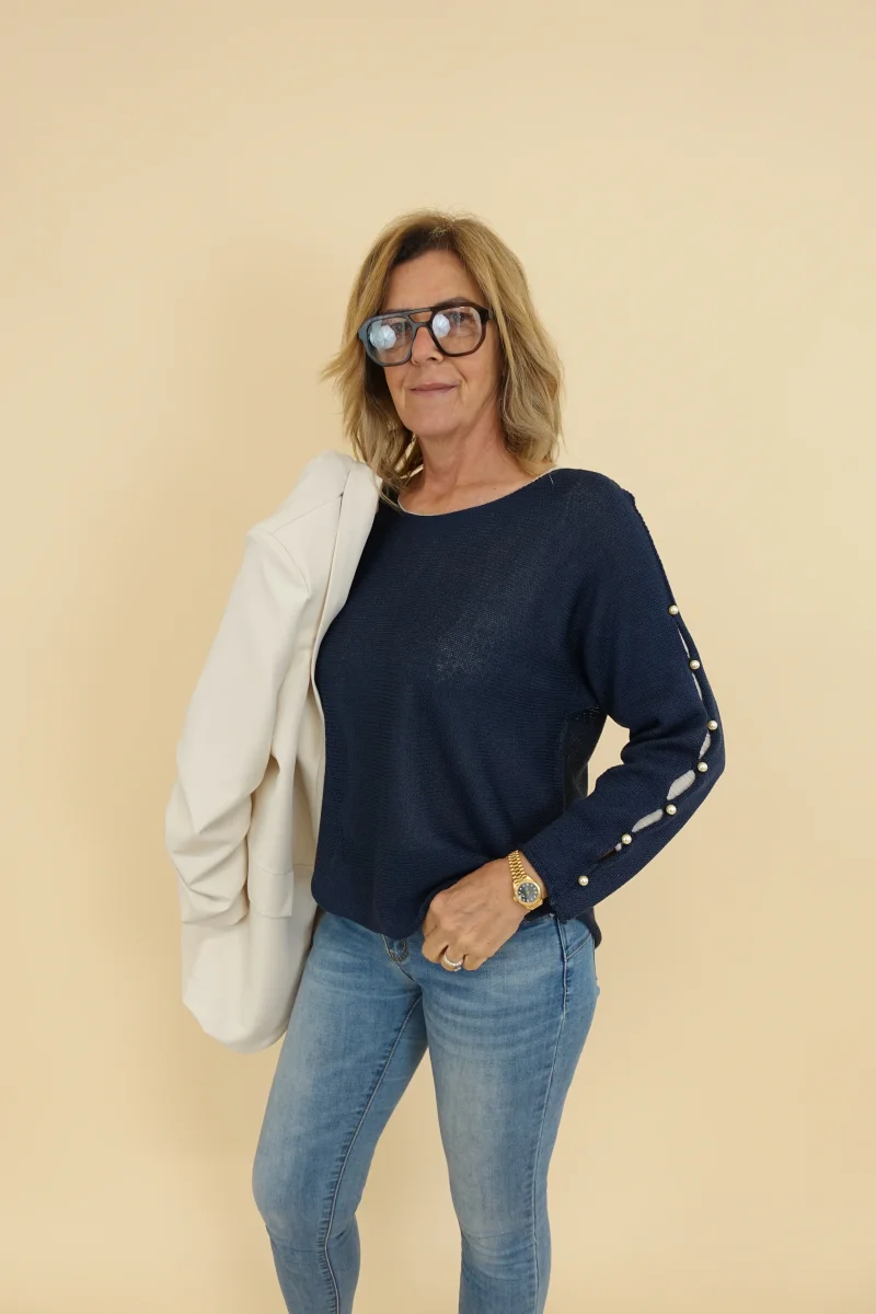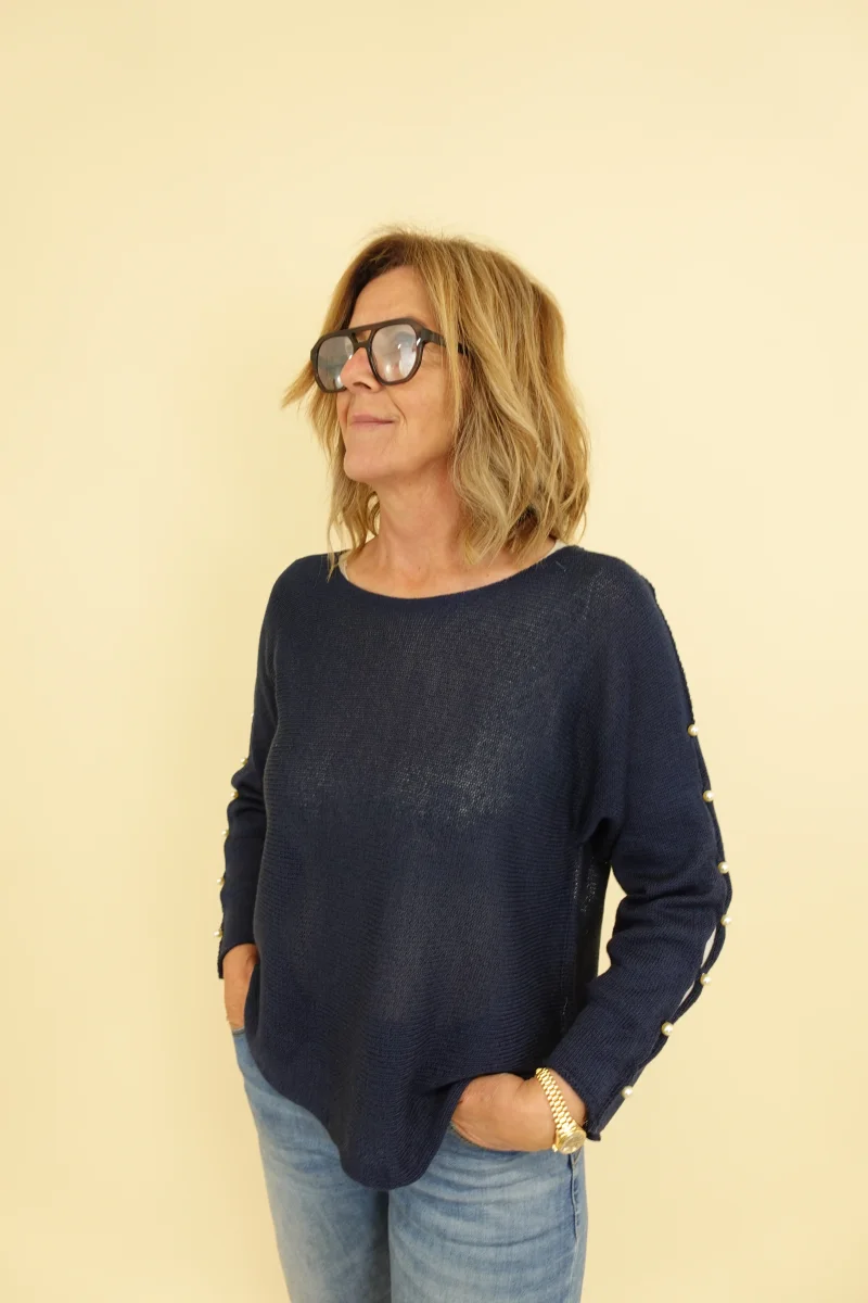Maglia con cut laterali e perline
