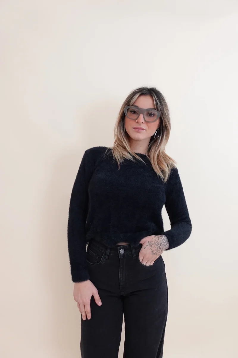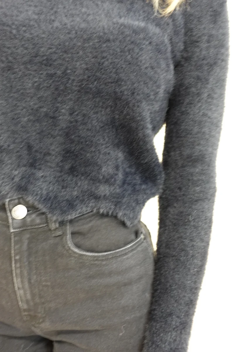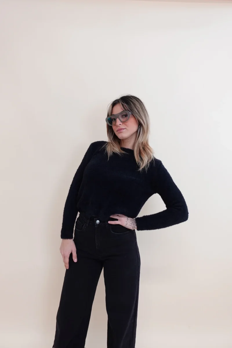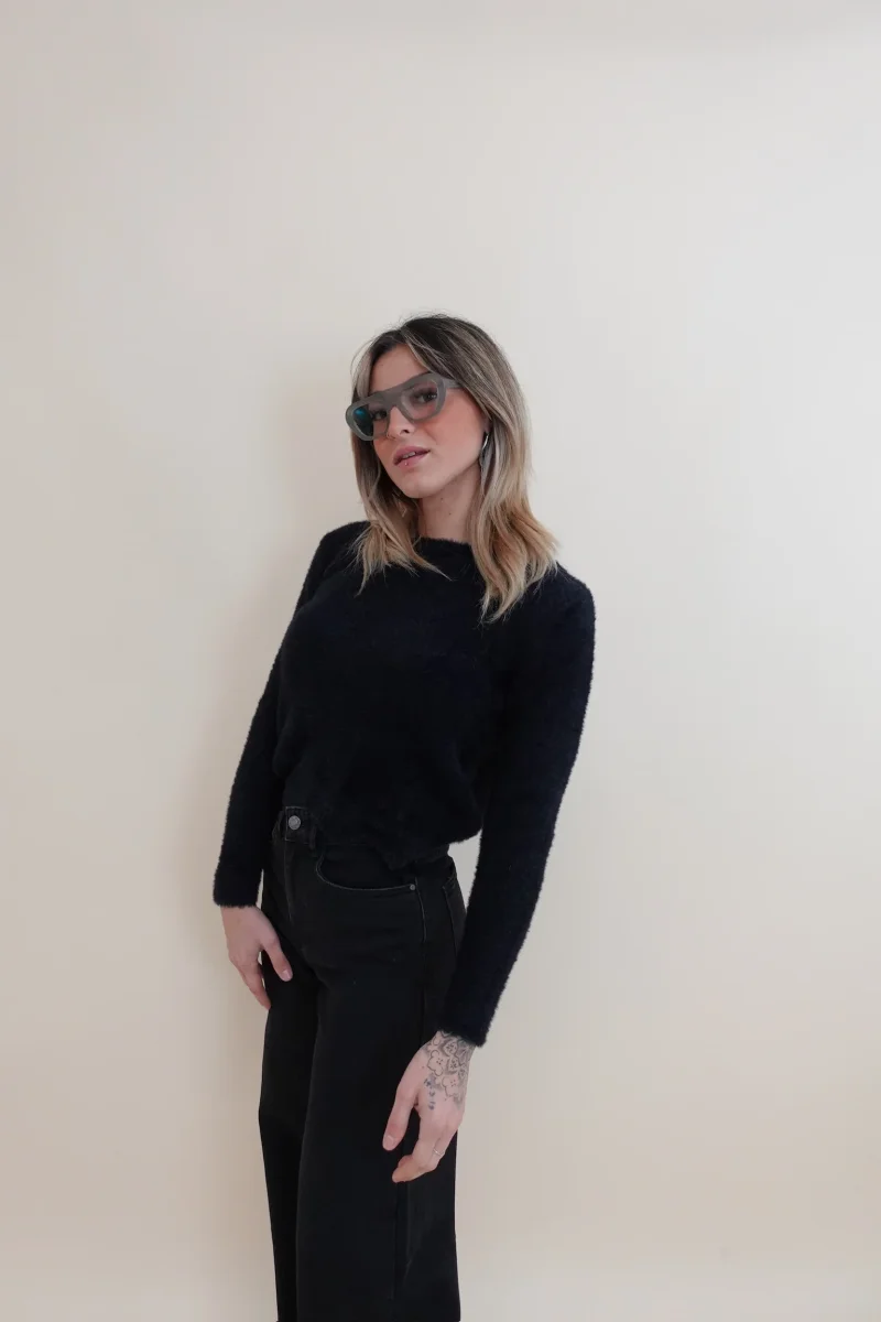 Maglione pelosetto con collo a girocollo e zig zag sul fondo