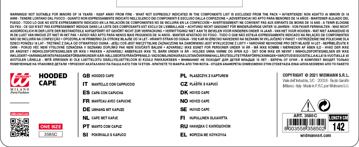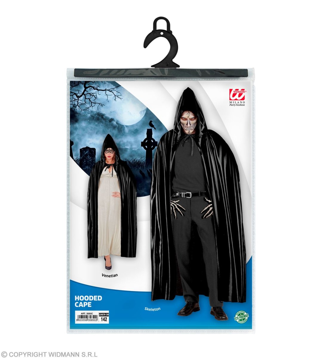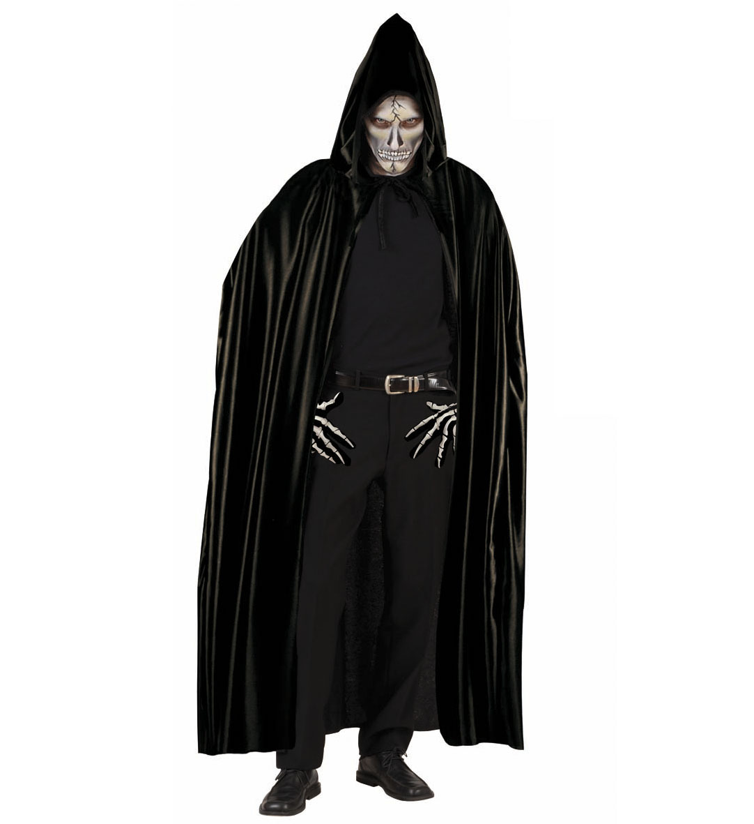 Mantello nero con cappuccio 142 cm