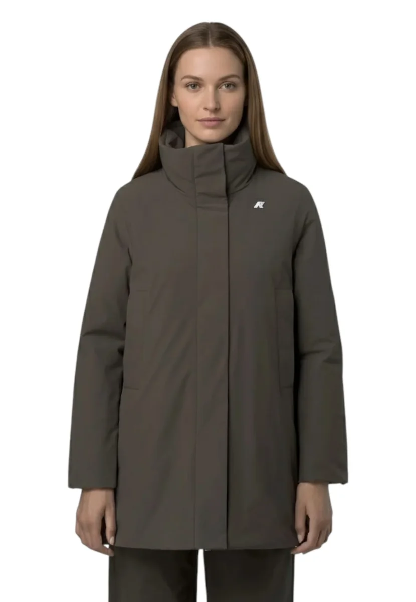 Realizzata in tessuto tecnico impermeabile e antivento, con fodera in tessuto lucido e imbottitura leggera in ovatta sintetica, Marla garantisce un grado di calore medio, ideale per la mezza stagione. I dettagli funzionali includono la zip a doppio cursore coperta da patta, polsini con ghetta interna, due tasche laterali con chiusura snap e il discreto logo K-Way in silicone bianco.
