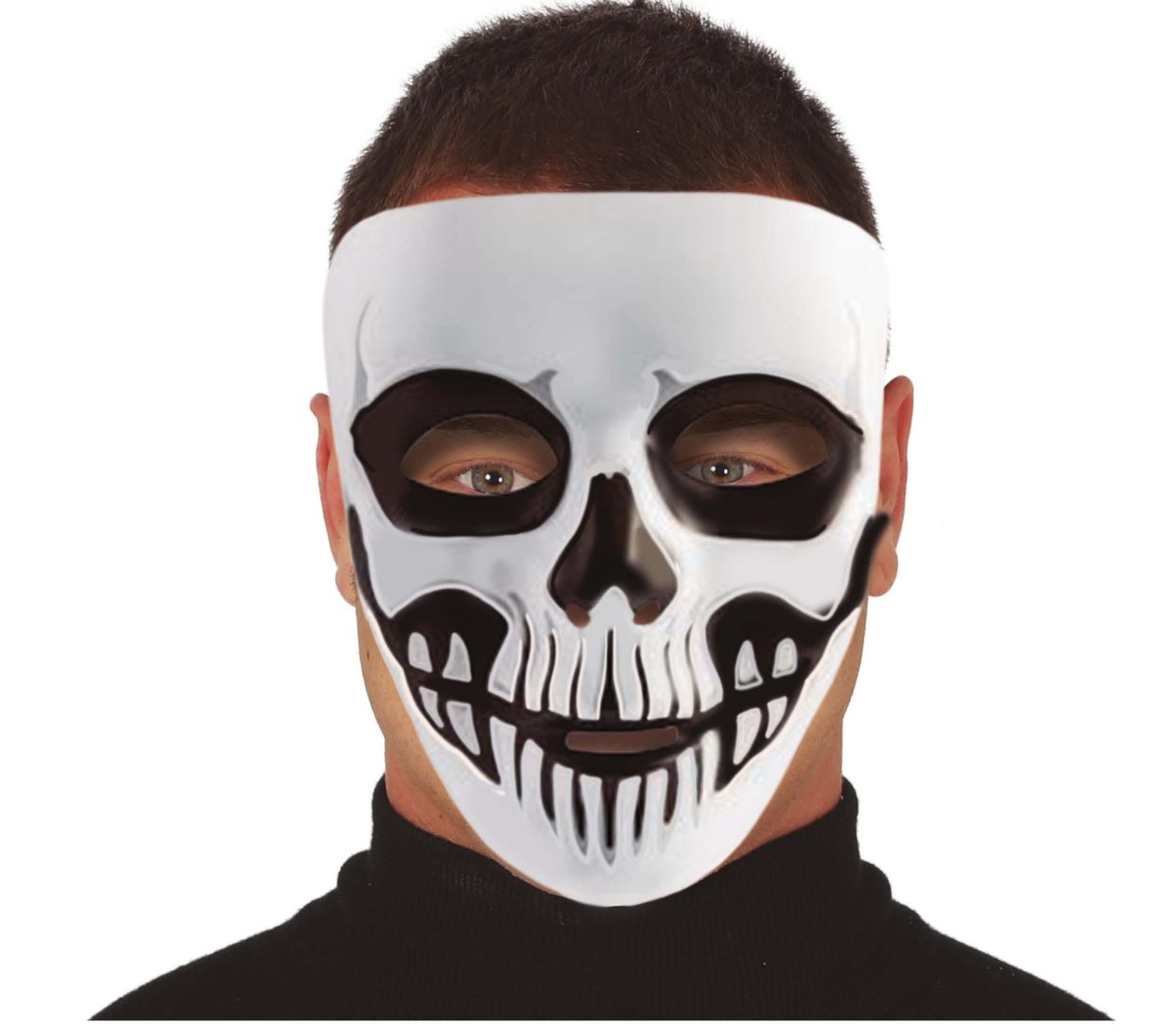 Maschera scheletro in PVC per Halloween e feste con scheletri. Con i tuoi spaventosi accessori scheletro nessuno ti riconoscerà,