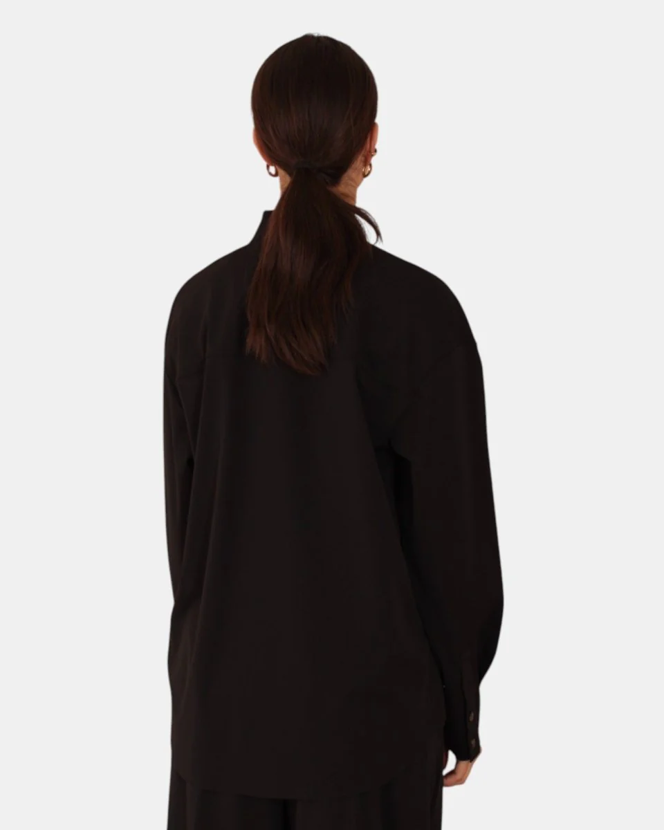 La camicia di Max Mara presenta chiusura a sei bottoni nascosti, fantasia monocolore, dalla mano morbida e fresca dovuta alla sua composizione in 87% poliestere e 13% elastan. Si consiglia lavaggio a mano. La modella è alta 1,68 m e indossa una S