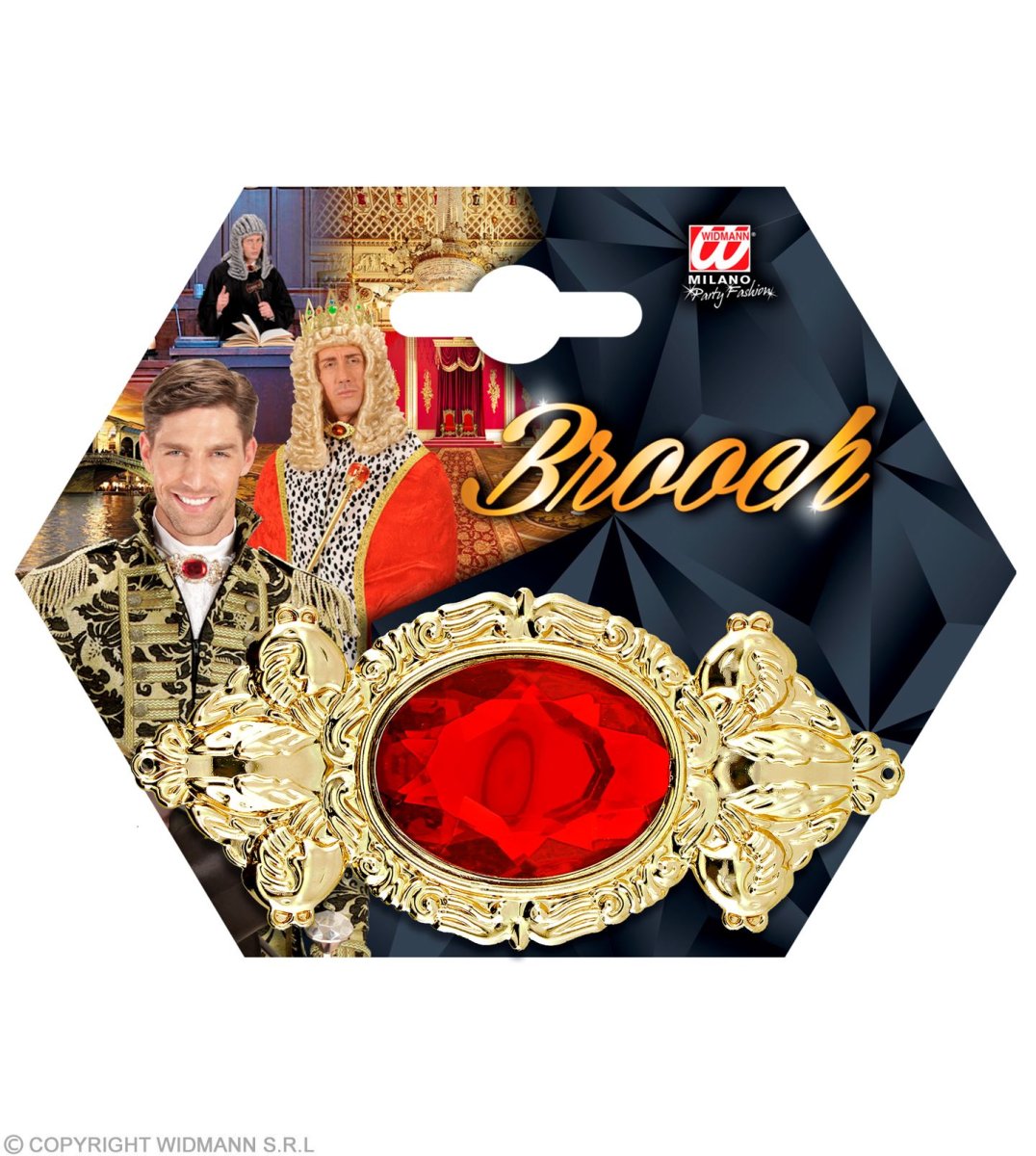 Maxi spilla con gemma rossa